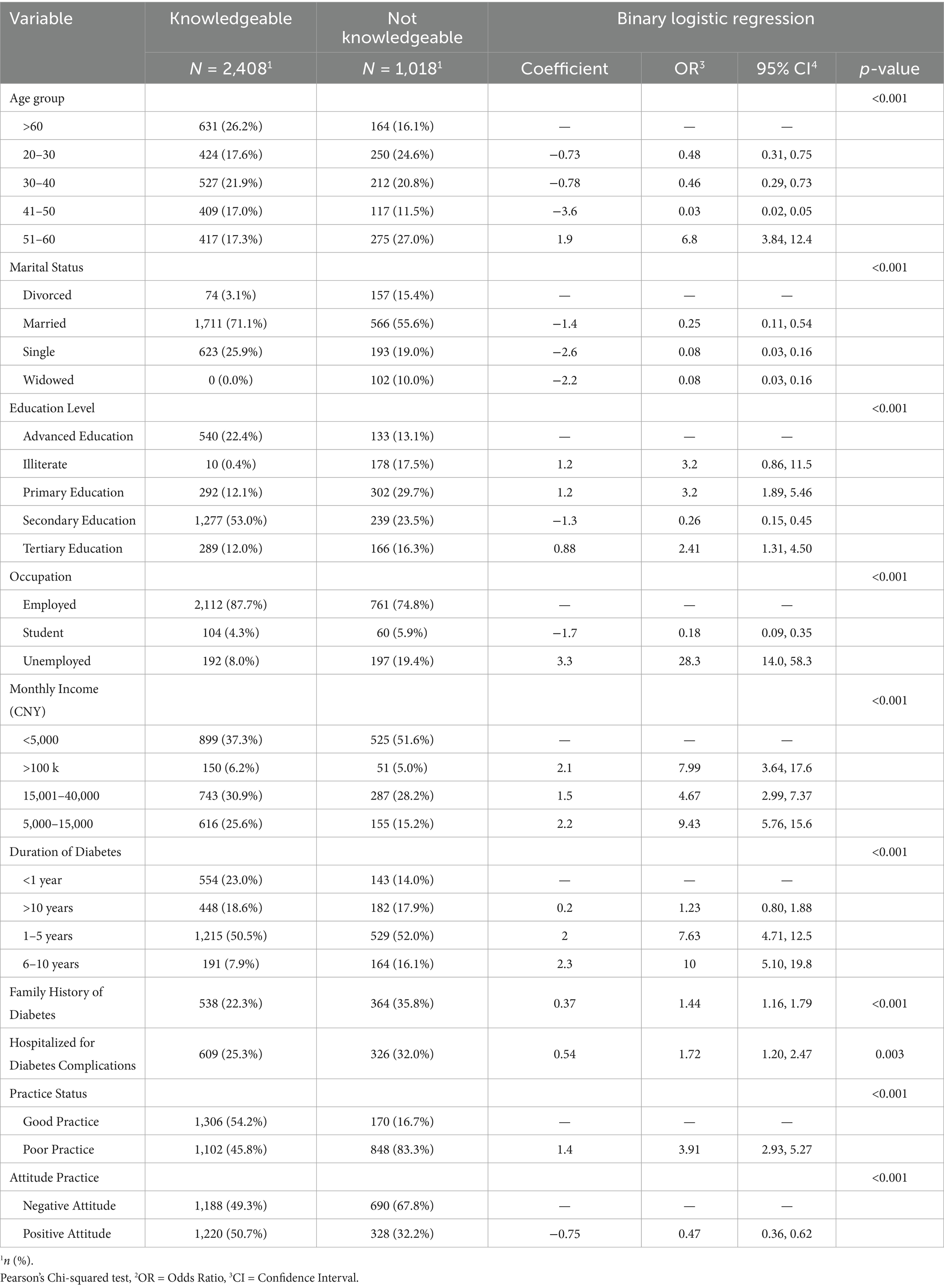 Table 5. Logistic regression analysis of factors associated with knowledge status, identifying key sociodemographic and clinical predictors.
