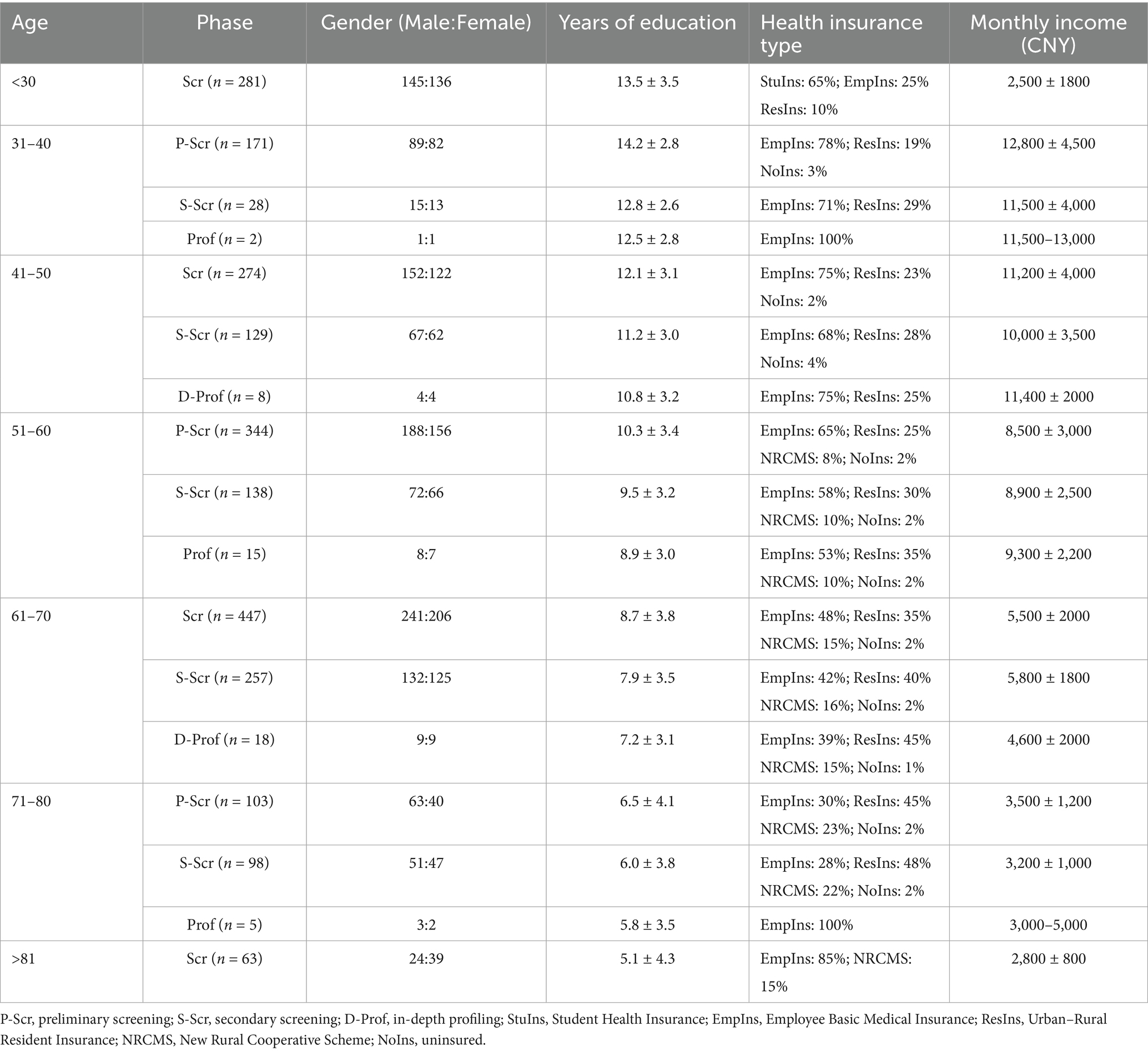 The third step was the in-depth profiling layer, during which a stratified disease progression evaluation system was developed, incorporating semi-structured qualitative interviews with 48 consenting participants, whose age distribution is detailed in Table 4.