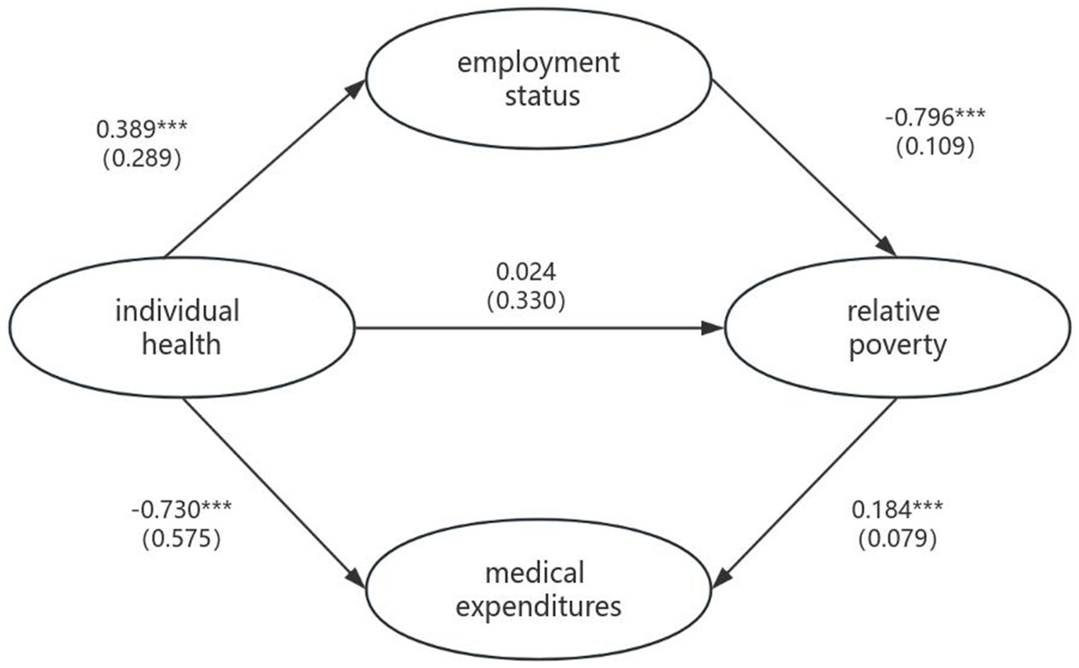 Figure 2 presents the structural model and empirical findings regarding the mechanisms linking individual health to relative poverty.
