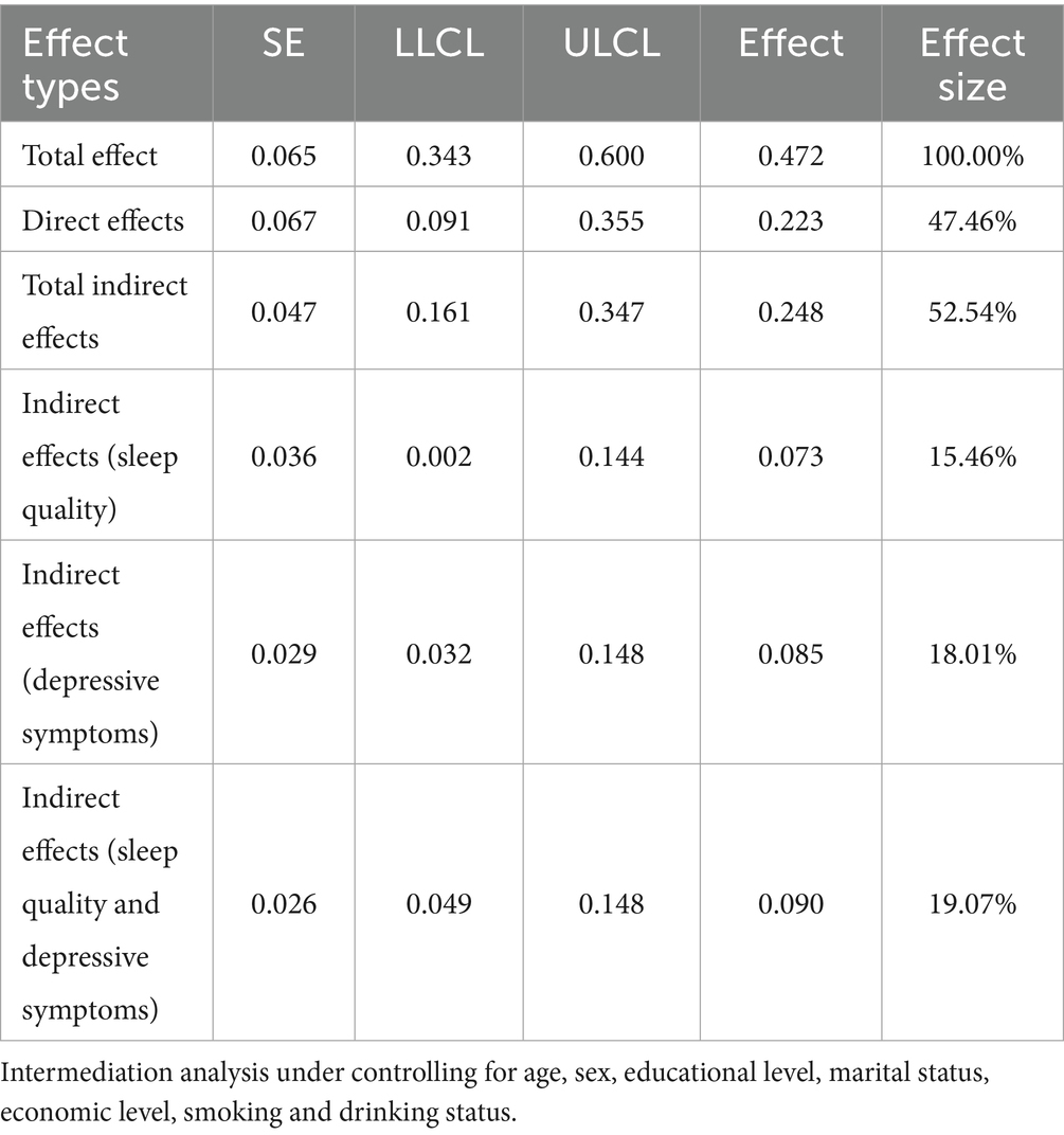 4.4 The chain mediating role of sleep quality and depressive symptoms