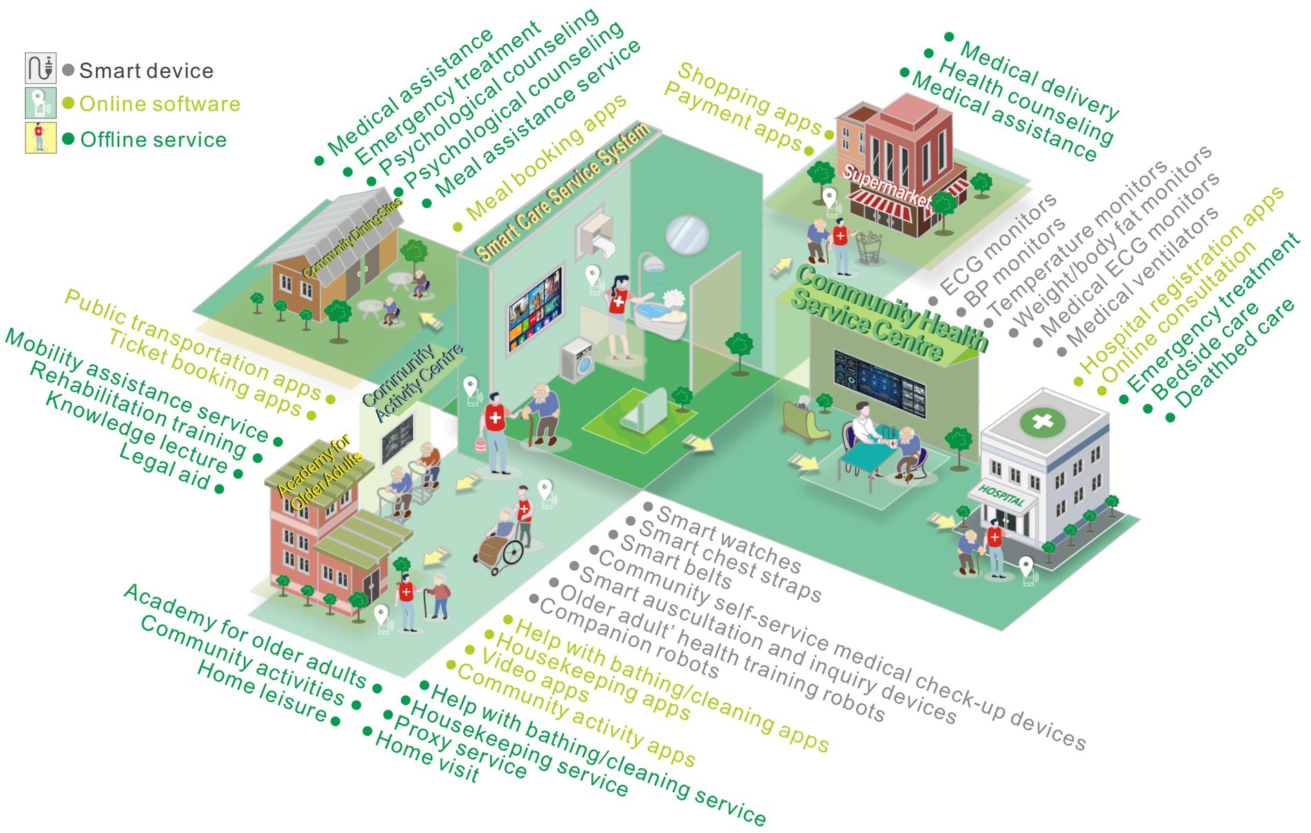 35. Zhang, L, and Xu, X. Construction of smart older adults care service model driven by primary health care. Front Public Health. (2023) 11:1157758. doi: 10.3389/fpubh.2023.1157758