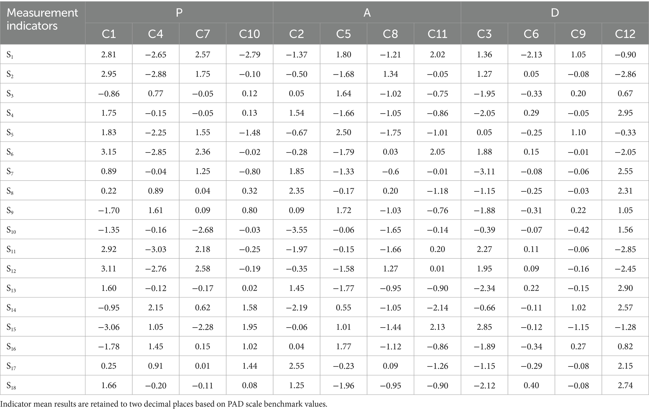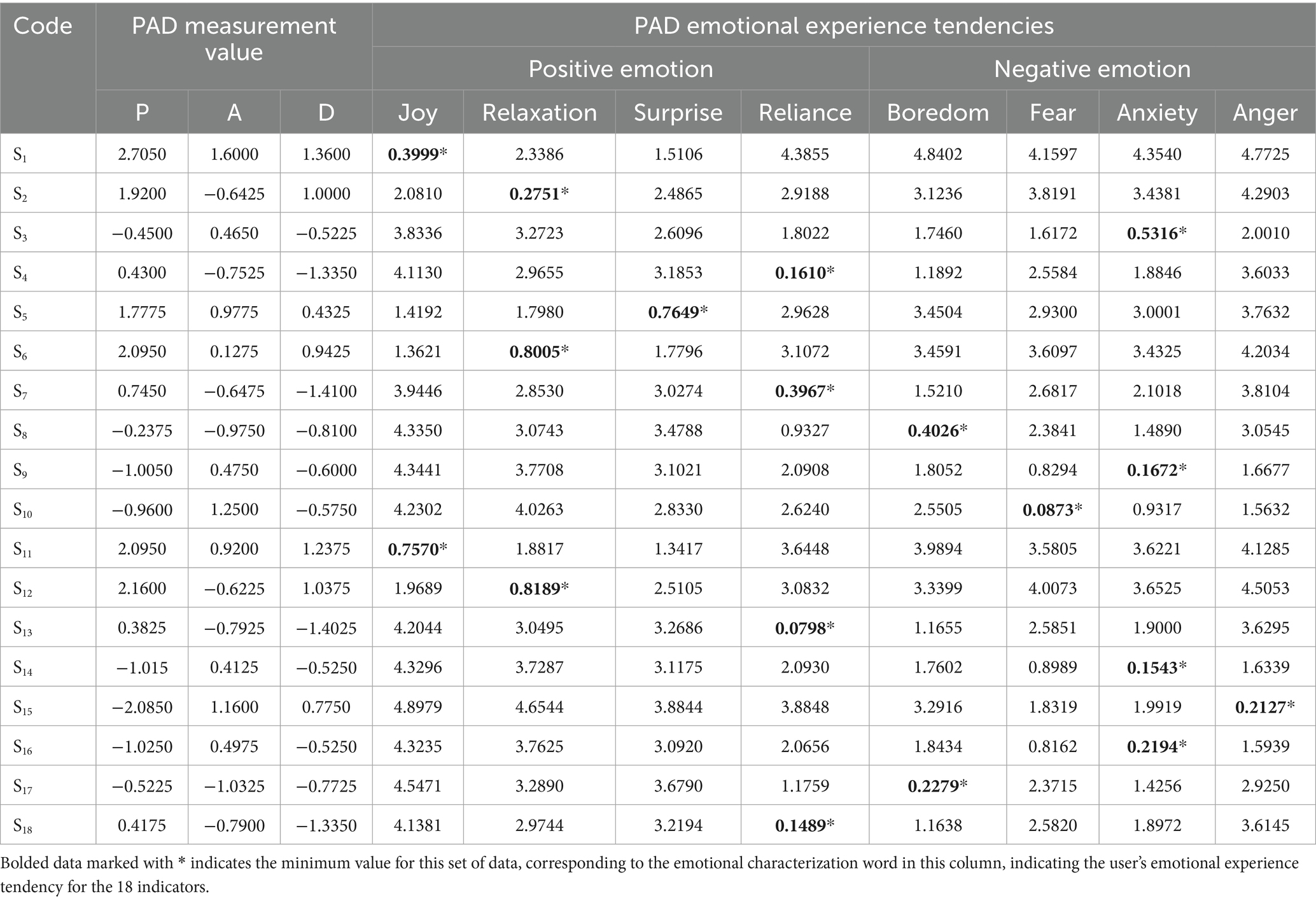Note: PN, AN, and DN are all benchmark values for PAD emotional characteristics (37).