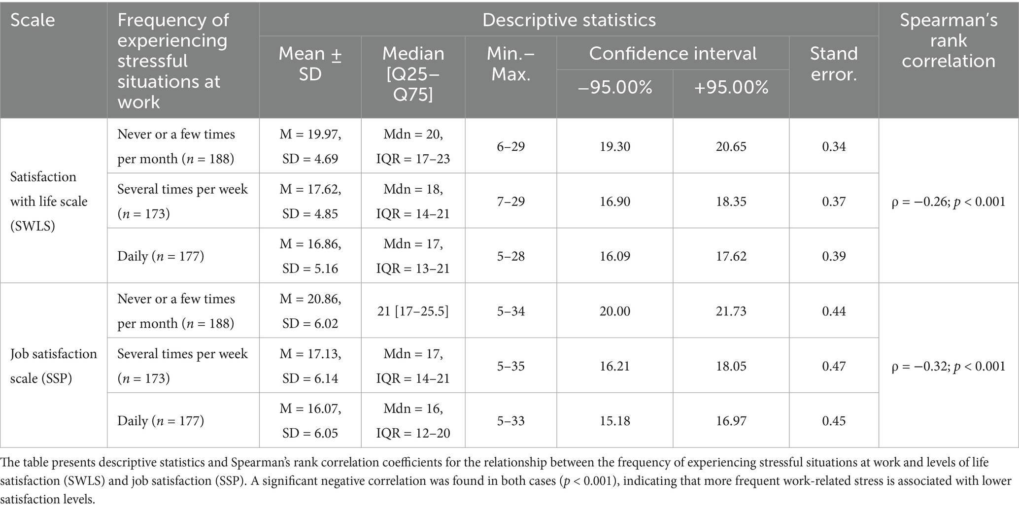 Table 7. Relationship between frequency of experiencing work-related stress and levels of life and job satisfaction (n = 538).