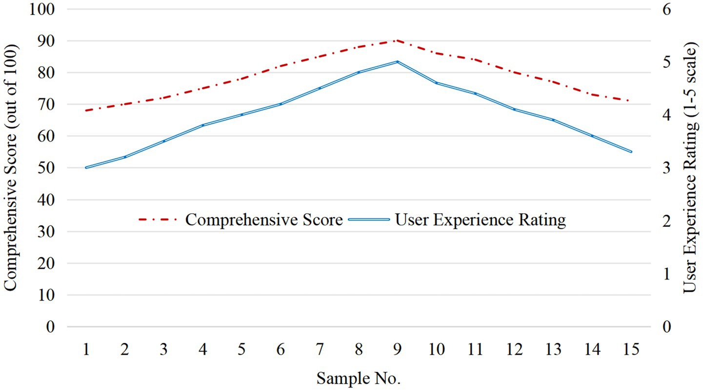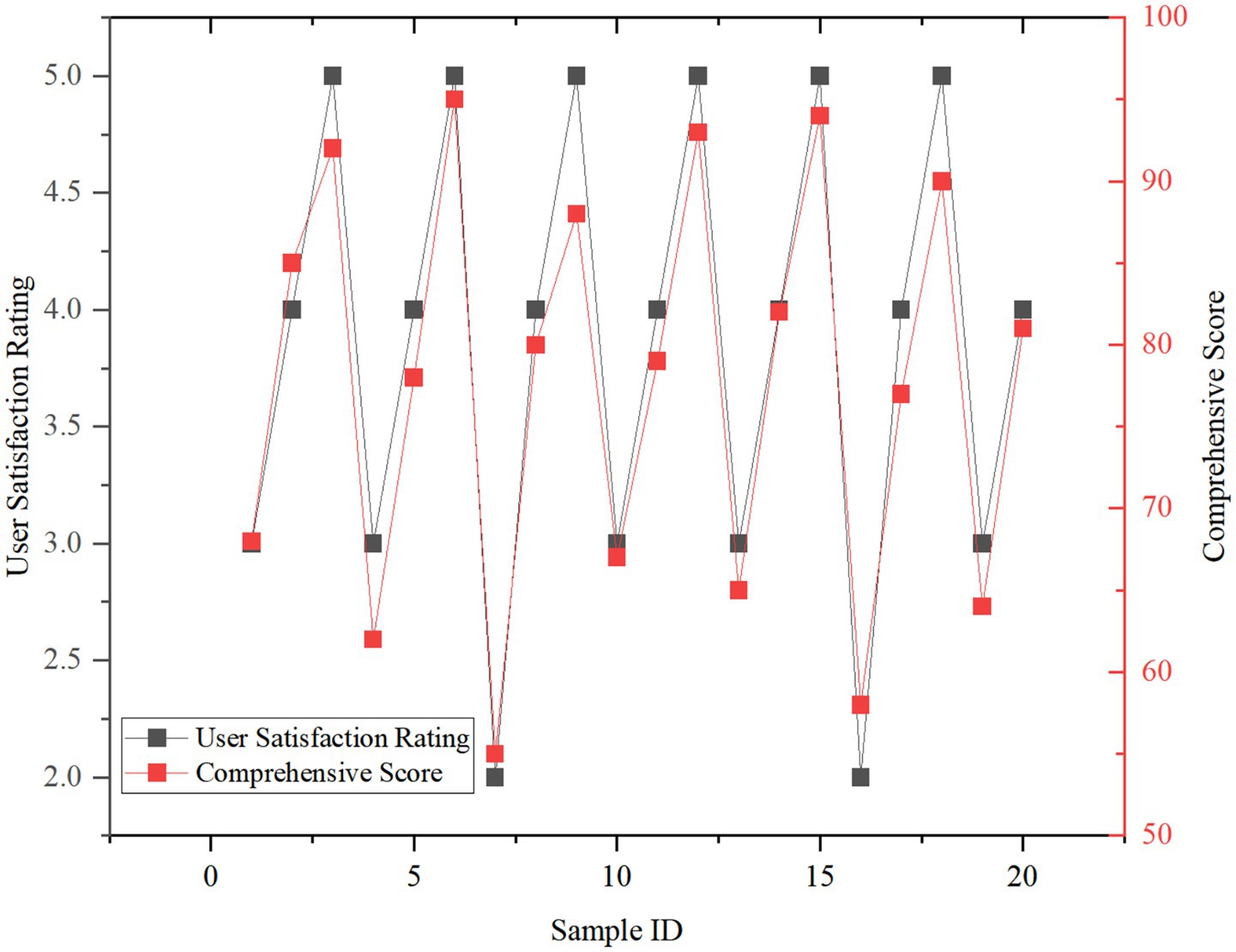 Figure 7 shows the relationship between the user satisfaction score and the comprehensive score of public art devices. With the satisfaction score increased from 3 to 5, the comprehensive score increased by 12.3 points on average (p < 0.05). This shows that the interactive experience of the public is the key factor to promote the low-carbon effect.