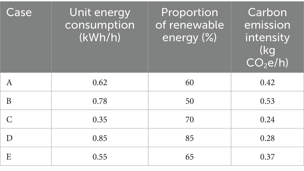 Based on the field monitoring data, Table 9 shows the unit energy consumption and the proportion of renewable energy in each case. Case C uses high-efficiency photovoltaic panels, so the unit energy consumption is at the lowest level, which is 0.35kWh/h. Case D, on the other hand, has the highest proportion of renewable energy, reaching 85%, which is because it combines the wind energy and solar energy hybrid system.