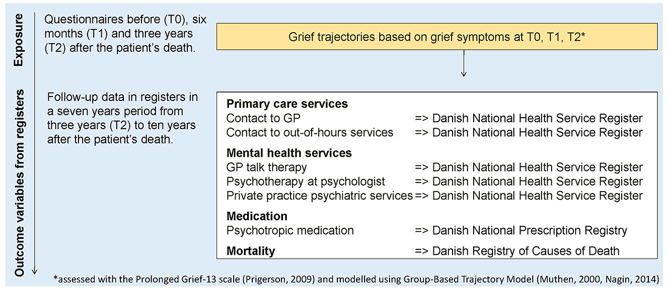 In the present study, we aimed to investigate associations between these grief trajectories and the long-term use of primary healthcare, prescription medication and mental health services, as well as mortality from 3 years up to 10-years after bereavement.