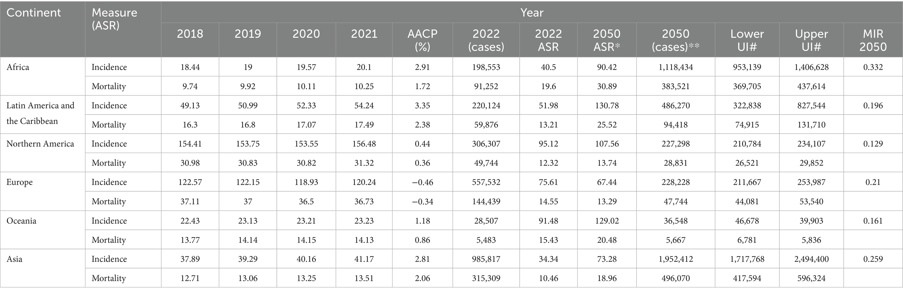 Table 3. Projections of incidence and mortality from 2018 to 2021 from IHME data ASR (per 100,000), 2022 ASR (per 100,000) and 2050 projection.