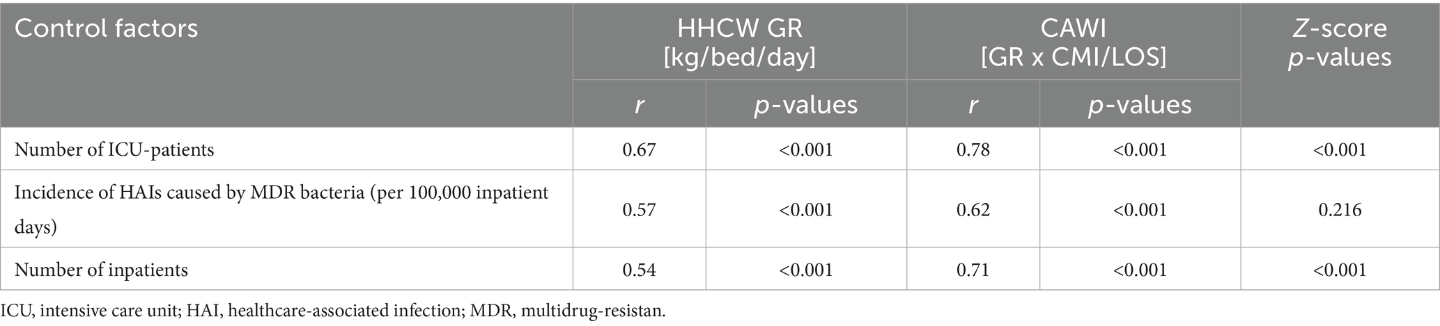 Table 2. Spearman’s correlation between waste generation indicators - hazardous healthcare waste generation rate (HHCW GR) and Complexity-Adjusted Waste Index (CAWI) - and institutional control factors.