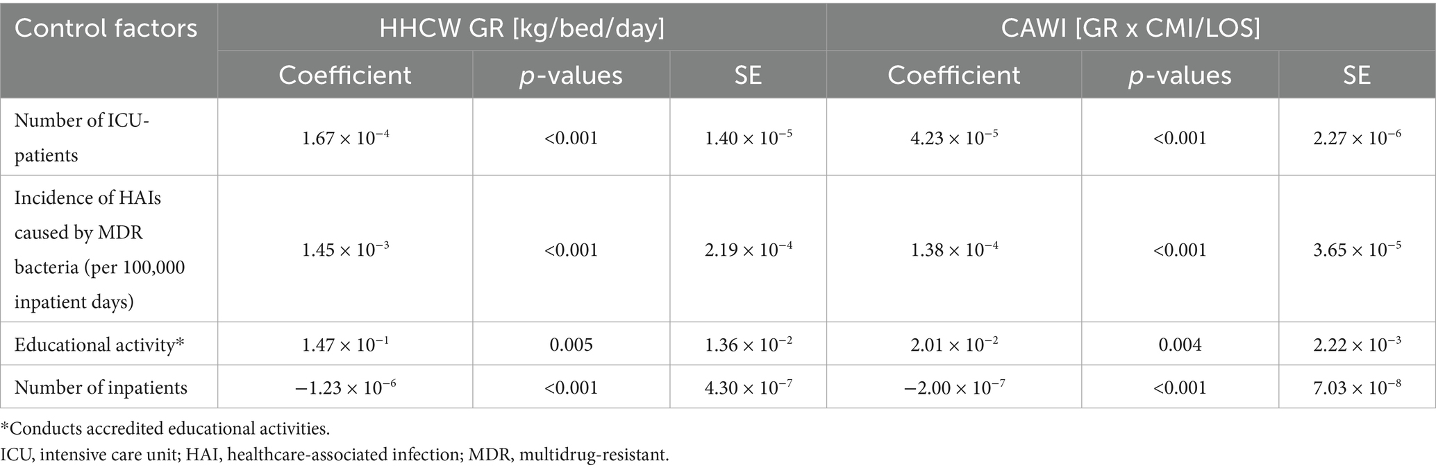 Table 3. Robust regression analysis of hazardous healthcare waste generation rate (HHCW GR) and Complexity-Adjusted Waste Index (CAWI) with institutional control variables.