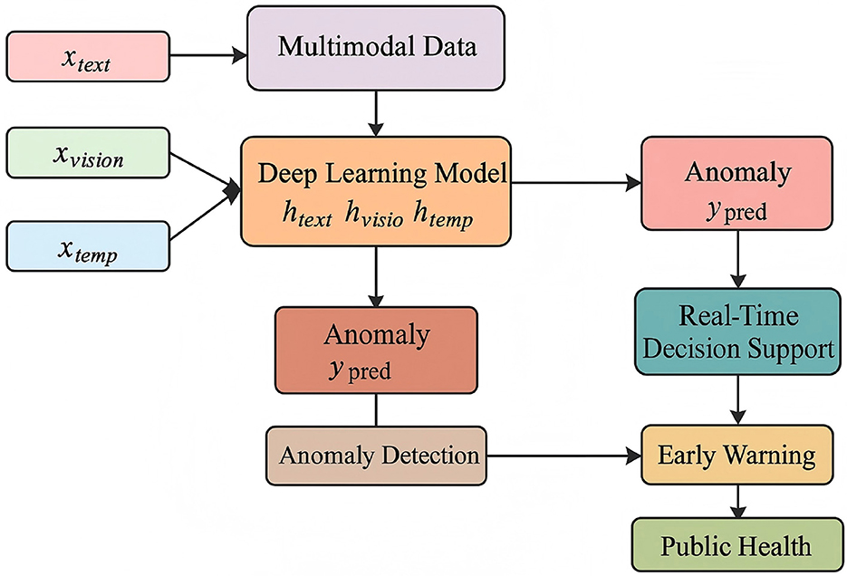 In recent years, the digitalization of disaster response systems has brought transformative changes to health emergency management (1). With the increasing frequency and complexity of health-related disasters, such as pandemics and large-scale outbreaks, timely and accurate identification of potential risks has become critical (2). Traditional systems often struggle with the timely detection of subtle anomalies in large-scale, multi-source public health data. Consequently, integrating advanced machine learning and deep learning techniques into anomaly detection presents a promising direction for enhancing early warning mechanisms (3). These techniques allow for the real-time processing of vast, complex datasets and the identification of hidden patterns and trends that are often overlooked by conventional methods (4). Moreover, the ability to detect outliers in heterogeneous data sources such as electronic health records, social media, and sensor data greatly supports proactive disaster response strategies. Therefore, developing intelligent systems based on deep learning for early risk identification in public health emergencies is not only necessary but also imperative for improving situational awareness and decision-making in digital disaster response (5).