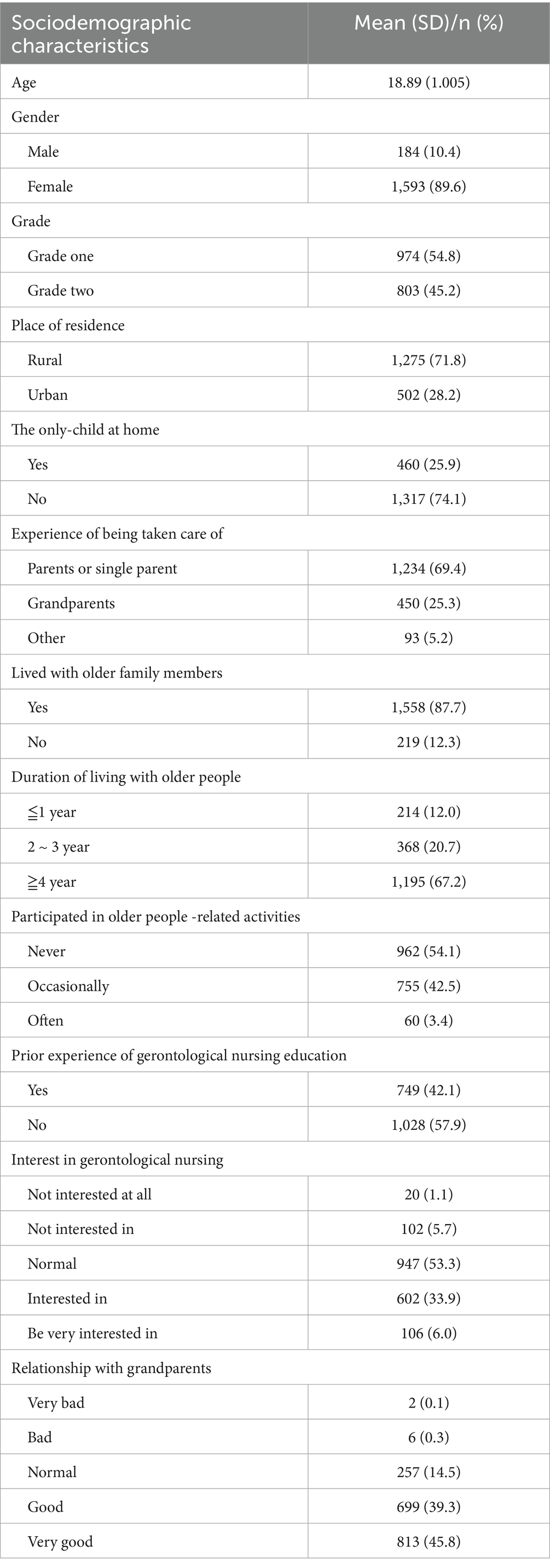 The questionnaires were distributed and completed online. Before the survey, the director of the study will appoint a person in charge of each of the two survey institutions, and they will explain the purpose, main content, significance, and requirements for completing in the questionnaire to the nursing students, and then distribute the questionnaire links. After obtaining the teacher’s authorization, the person in charge will inform participants about the research inclusion criteria and their right to refuse participation, followed by the distribution of the questionnaire links. The questionnaire will take around 15 to 20 min for nursing students who meet the eligibility and consent requirements to complete and submit and the investigator will consistently monitor the completion of the questionnaire and ensure quality control by discarding incorrect submissions. Finally, a total of 1825 questionnaires were issued and 1777 valid questionnaires were collected, with an effective recovery rate of 97.37%.