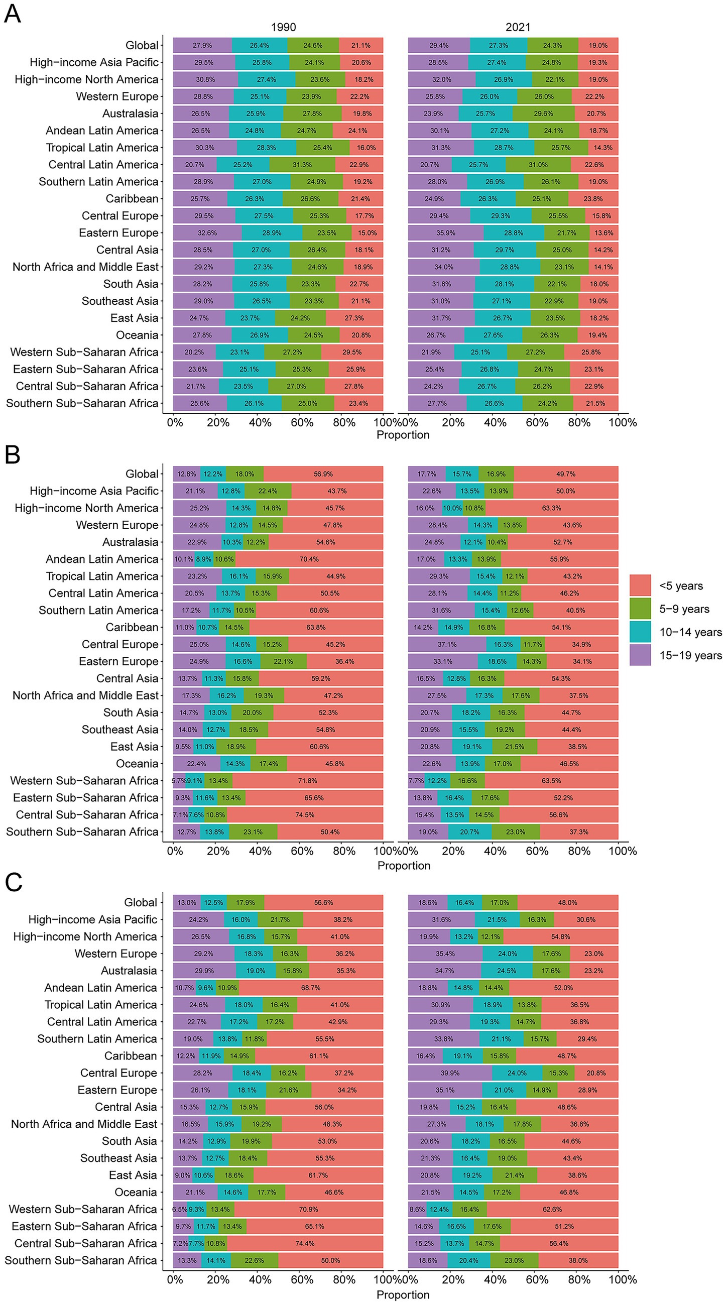 In light of this significant yet preventable burden, there is a strong rationale for a comprehensive global trend analysis of child and adolescent injuries. Understanding long-term trends and disparities in injury incidence and outcomes is crucial for guiding prevention efforts and policy. Previous analyses have highlighted the heavy toll of transport and other unintentional injuries among youth (10), but an updated global assessment is needed to evaluate progress over the past three decades and to inform future strategies. Using the latest Global Burden of Disease (GBD) 2021 data, which includes comprehensive estimates for 204 countries and territories up to the year 2021, we can quantify trends in injury incidence, mortality, and disability-adjusted life years (DALYs) with consistent methods. Such an approach allows us to monitor whether interventions and socioeconomic changes since 1990 have reduced the burden, and to identify persistent gaps.