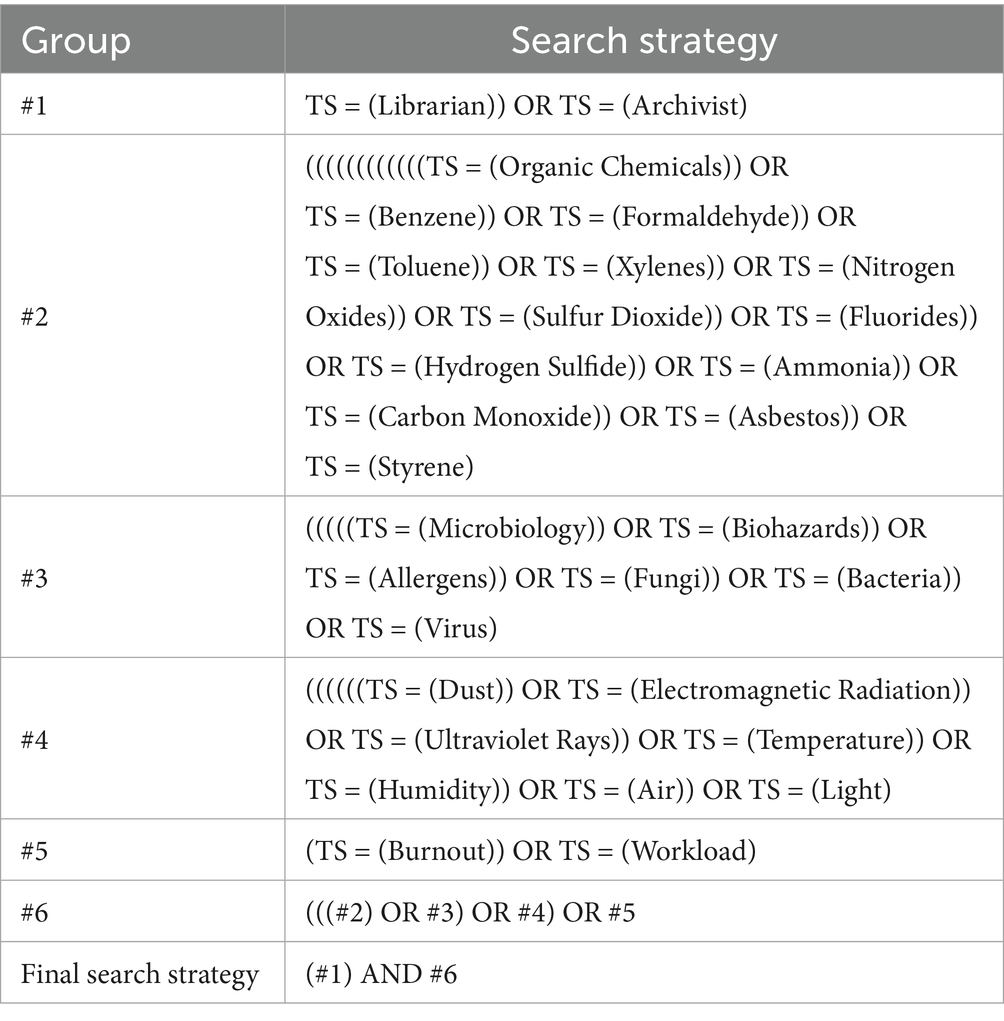 Data extraction was performed independently by two authors (Mei Dou and Xiaomin Wang) using a standardized data extraction form. The following information was extracted from each included study: consisted authors, design used, number of population (archivists), main outcome, suggested mitigation and types of occupational hazards assessed (including biological, chemical, physical, and overwork factors). Any discrepancies were resolved by discussion with the other authors (Yan Li and Anjing Gong). The extracted data were then synthesized and analyzed to identify common themes, patterns, and gaps in the existing literature.
