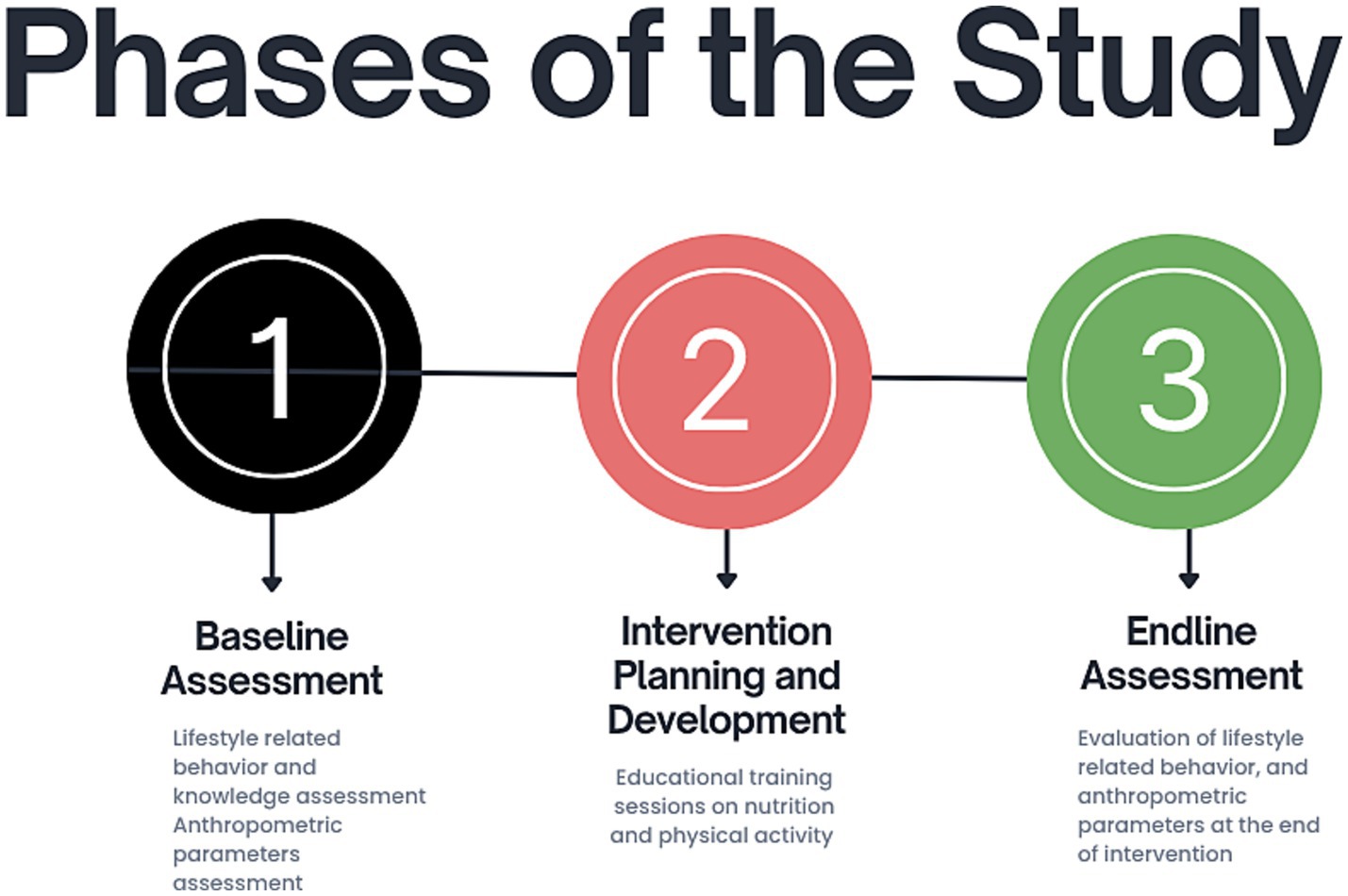 • Number of schools selected: according to Pakistan Education Statistics report (2021–22) 15 teachers on average in each school – 130/15 = 8 schools selected via purposive sampling. Purposive sampling was chosen to select schools based on practical considerations such as administrative permissions and accessibility, institutional cooperation, and the practicality of implementing a lifestyle intervention in real-world school settings. This will enhance the study’s contextual relevance, and help understand the feasibility of future up-scaling within similar environments (39). Employing purposive sampling may limit the study’s applicability to other population groups such as private or rural school teachers. However, utilizing purposive sampling will help prioritize contextual comprehension and intervention feasibility at a deeper level. This is consistent with implementation research frameworks that prioritize situational understanding over statistical representativeness (40).