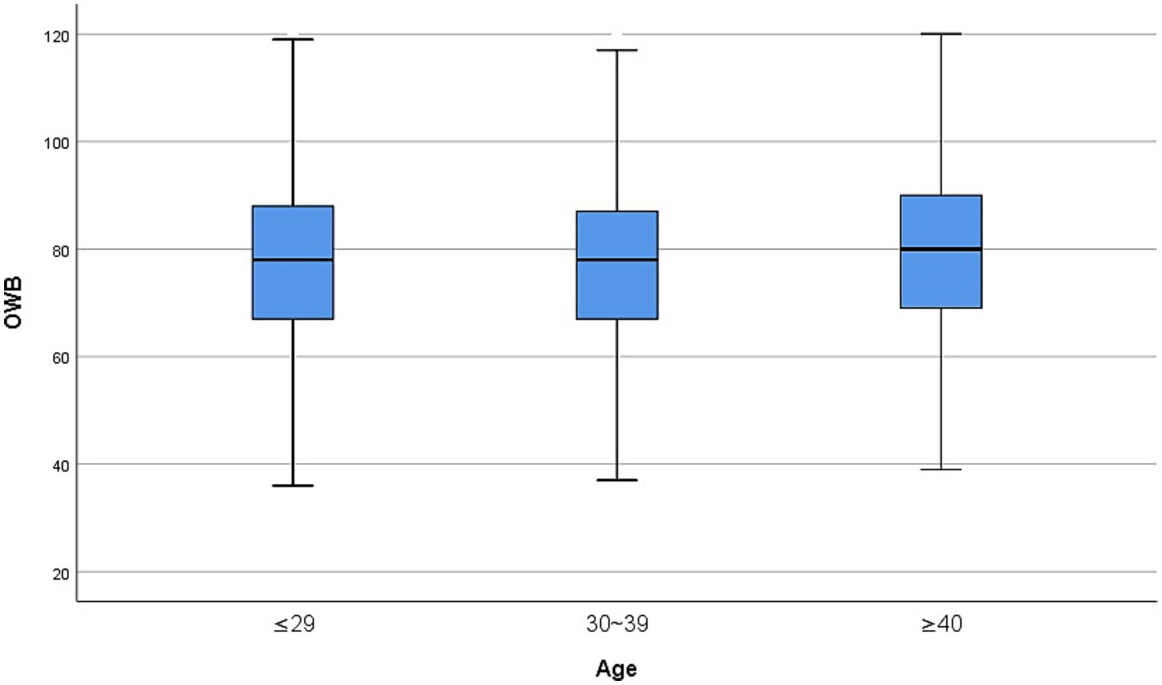 Dongmei Hu’s (14) Occupational Well-Being Scale for Healthcare Workers served as the model for the scale utilized in this investigation. It consists of 24 measures spread over five dimensions: Work Environment (4 items), Financial Compensation (3 items), Social Support (5 items), Sense of Competence/Value Realization (6 items), and Physical and Mental Health (6 items), with the Cronbach’s alpha coefficients for each dimension being 0.877, 0.927, 0.905, 0.894, and 0.896, respectively. A 5-point Likert scale, with 1 denoting “Completely Disagree” and 5 denoting “Completely Agree,” was used to rate the items; higher scores indicated stronger agreement. Greater occupational well-being is indicated by higher overall scores. To conform to the general scoring direction, the responses to the six reverse-scored items on the Physical and Mental Health subscale are inverted (for example, 5 → 1, 4 → 2) before summation.