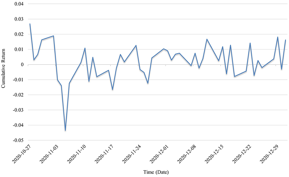 Post-pandemic, the market entered a phase of gradual recovery. Although the annualized return during this period remained slightly negative at −0.013514, volatility declined significantly, suggesting that investor expectations were becoming more rational and that the market was slowly reverting to pre-pandemic conditions. Over the entire sample period, the annualized return reached 0.226055, highlighting the long-term viability of structurally informed investment strategies in navigating public health crises. This result provides empirical evidence that constructing investment frameworks around the evolution of public health emergencies can enhance risk management capabilities and mitigate the asset losses associated with systemic shocks.
