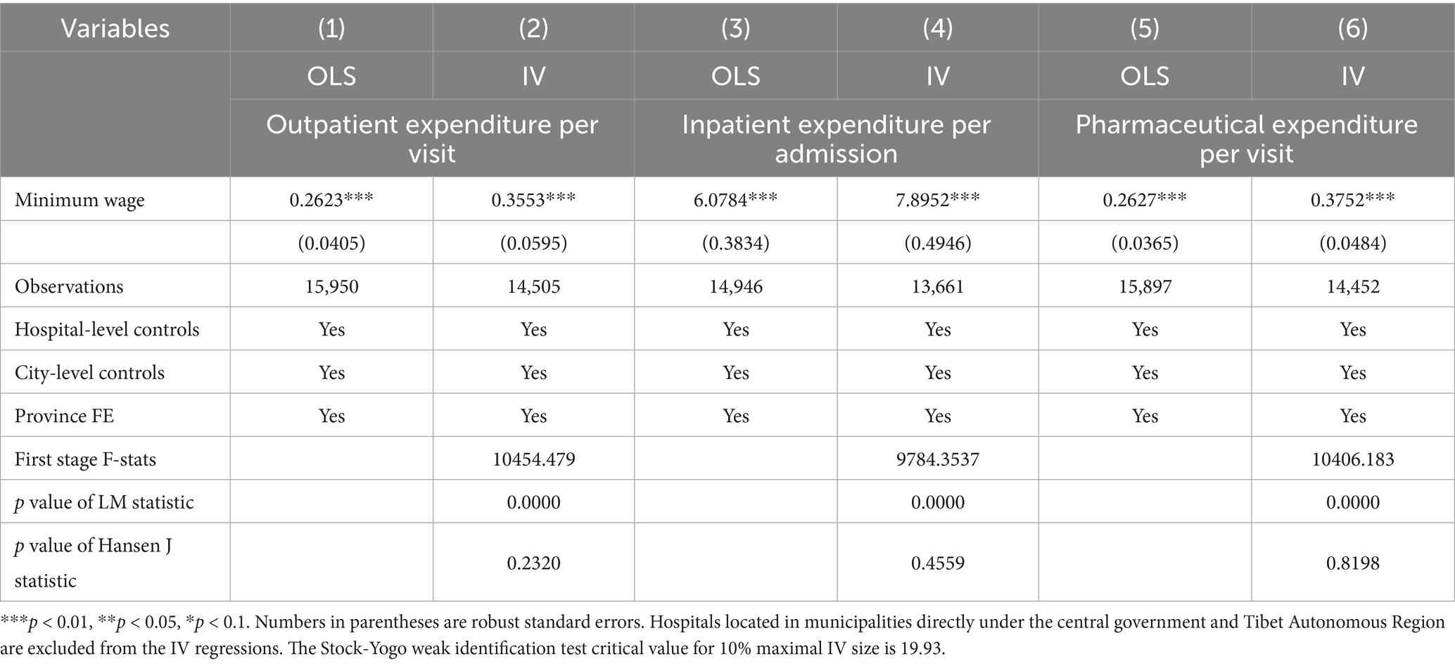 Methods: We use large national hospital-level microdata from China to examine how regional minimum wages affect individual medical expenditures. To address endogeneity concerns, we employ an instrumental variable (IV) strategy using two-stage least squares (2SLS) estimation.