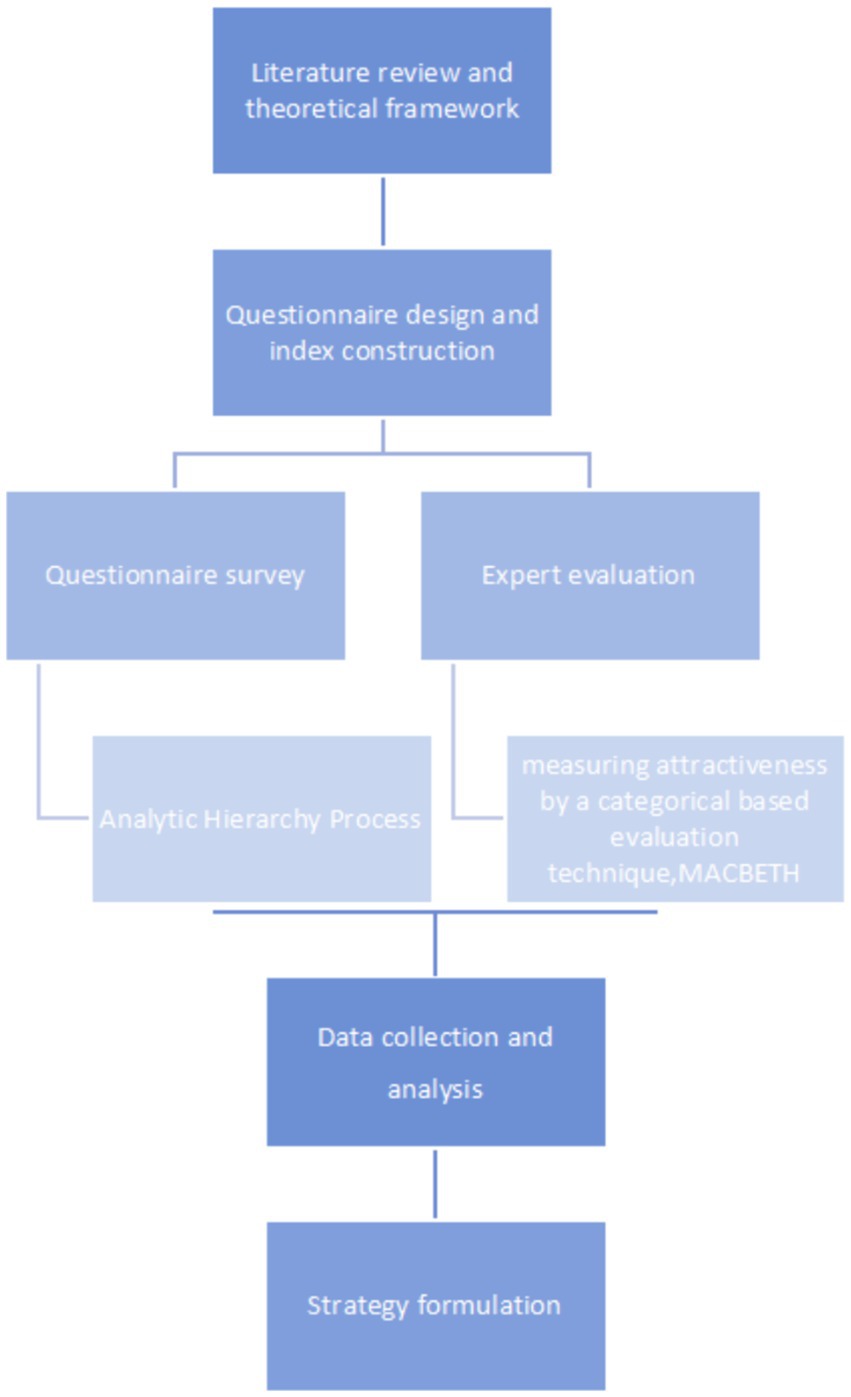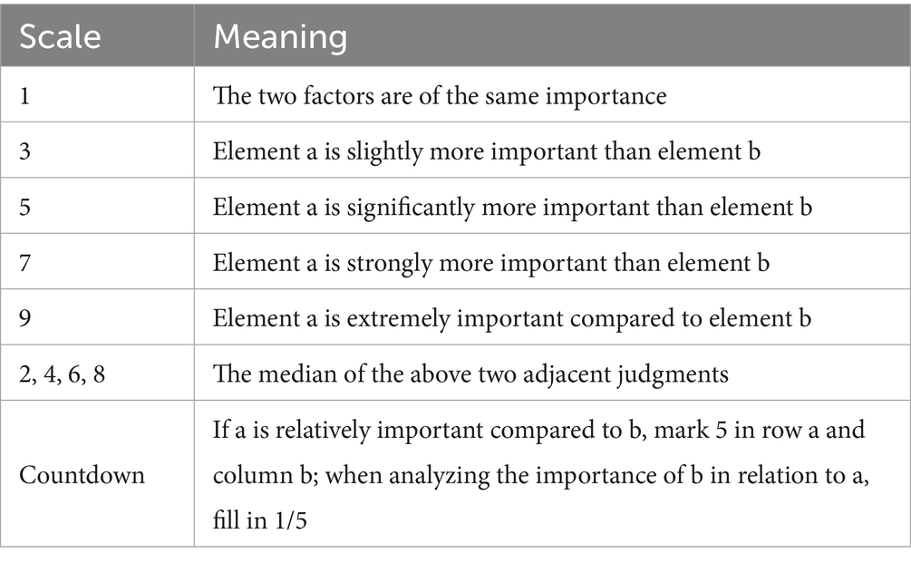 Although the AHP method has advantages such as clear structure and simple operation, there are still certain risks of subjectivity and consistency in the expert scoring process. To enhance the scientificity and consistency control of the multi-index weight determination process, this study, based on the original AHP analysis method, The Measuring Attractiveness by a Categorical Based Evaluation Technique (MACBETH) semantic judgment method was introduced as a supplementary verification tool. This method constructs a consistency judgment matrix through the language description of the importance differences among indicators by experts (such as “moderate difference,” “maximal difference,” etc.), and estimates the weights of each indicator using linear programming. The format of the questionnaire is shown in the Supplementary Material.