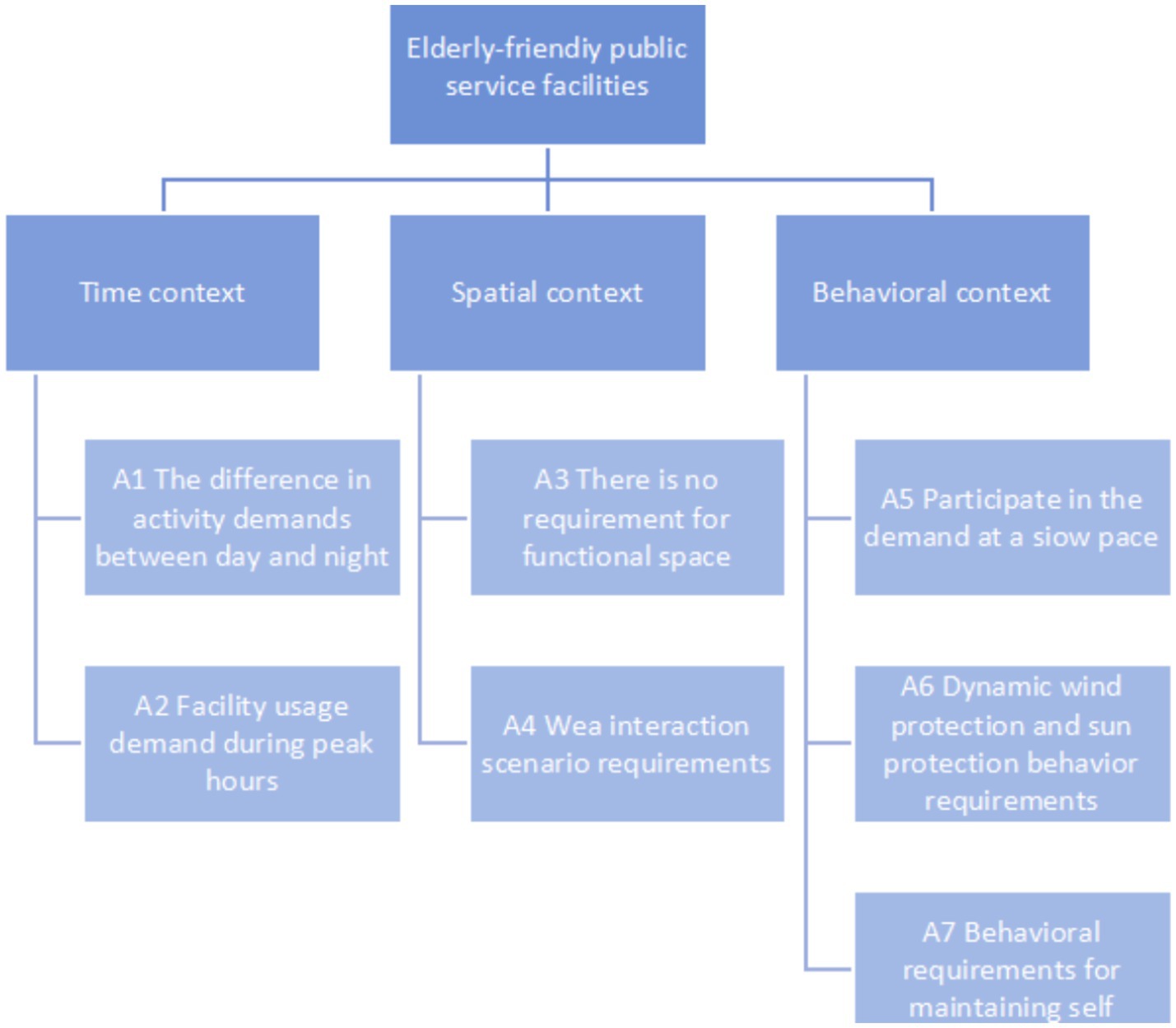 This article is structured as follows: Section 2 presents a literature review of the contextual theory. Section 3 presents the methods of this study, semi-structured interviews and analytic hierarchy process, supplemented by Measuring Attractiveness by a Categorical Based Evaluation Technique. Section 4 analyzes the demands of older adults people regarding public service facilities in different situations. The results and quantitative analysis are presented in Section 5, which are then discussed in Section 6; strategies are also proposed here. Section 7 summarizes the significance of this study and puts forward suggestions for future research.