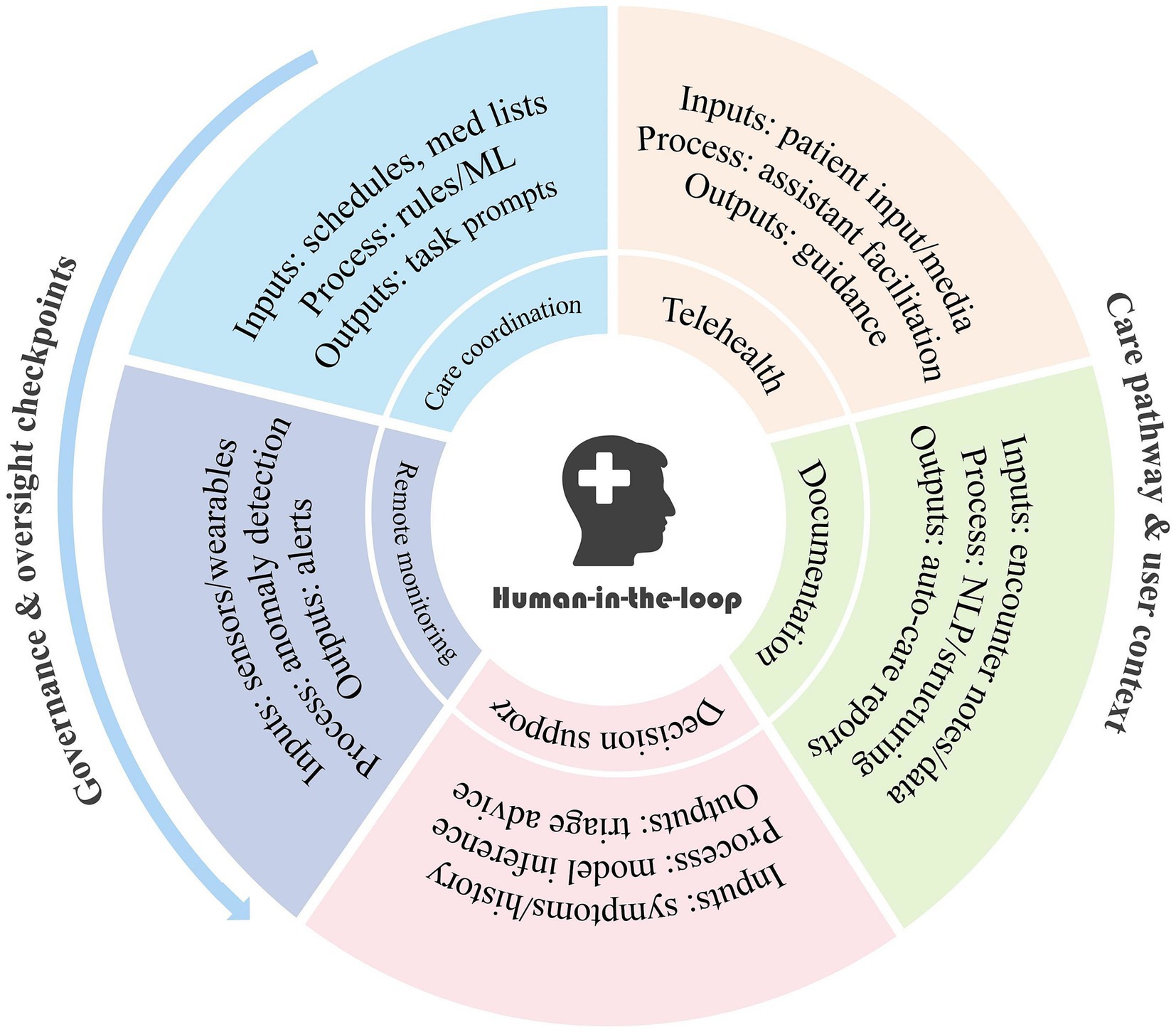 To provide readers with a clearer overview of the diversity of AI-driven healthcare systems in the region, we have summarized the main categories of current applications in Figure 1, including remote monitoring, care coordination, telehealth, documentation, and decision support.