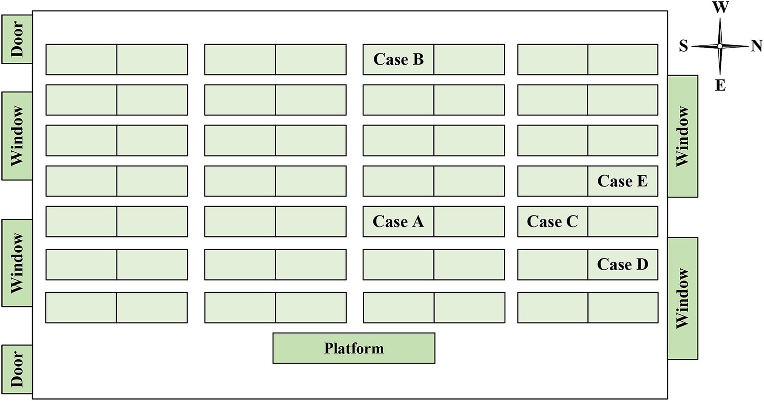 Inadequate classroom ventilation (inferred from building design and seasonal conditions) and insufficient implementation of routine TB prevention and control measures in schools may have contributed to the increased TB transmission (14, 33). The teaching building where the current outbreak took place was in the shape of the letter “B,” with the two affected classrooms situated on the horizontal line of the “B.” Owing to the influence of the surrounding classrooms and offices, the ventilation was poor. Furthermore, the outbreak occurred in winter, and classroom doors and windows remained closed throughout lessons, which was not conducive to air circulation. The classroom was equipped with ultraviolet disinfection lamps. However, the installation height of the lamps was excessively high, and their surfaces were covered with a significant amount of dust, so it was difficult to guarantee the effect of air disinfection.