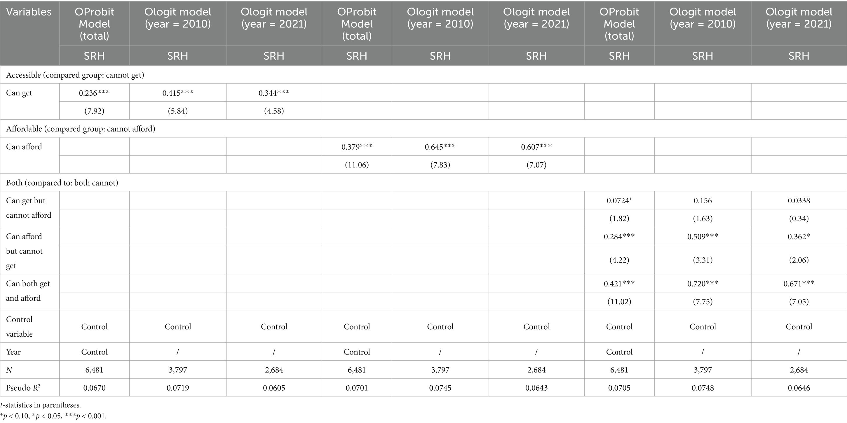 We conducted a series of robustness checks to confirm the reliability of our findings. The first robustness check replaces the initial-order logistic regression model with an order probit model. This methodological switch allowed us to assess the sensitivity of our results to alternative estimation techniques, ensuring that our conclusions were not influenced by specific assumptions inherent in the logistic framework. Furthermore, we performed a second robustness check by analyzing samples from different years. As the health policy changed significantly from 2010 to 2021, this resulted in different levels of health system confidence. By examining regressions across these distinct timeframes, we determined whether our results remain consistent despite variations in the policy development period. The results of both robustness checks indicate a high degree of stability and affirmed the validity of our initial findings, and thereby reinforced the reliability of our conclusions regarding the impact of health system confidence on SRH (Table 3).