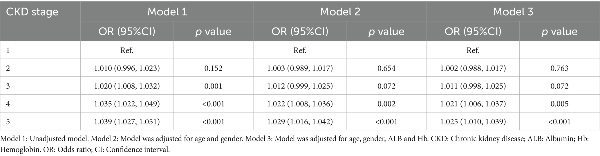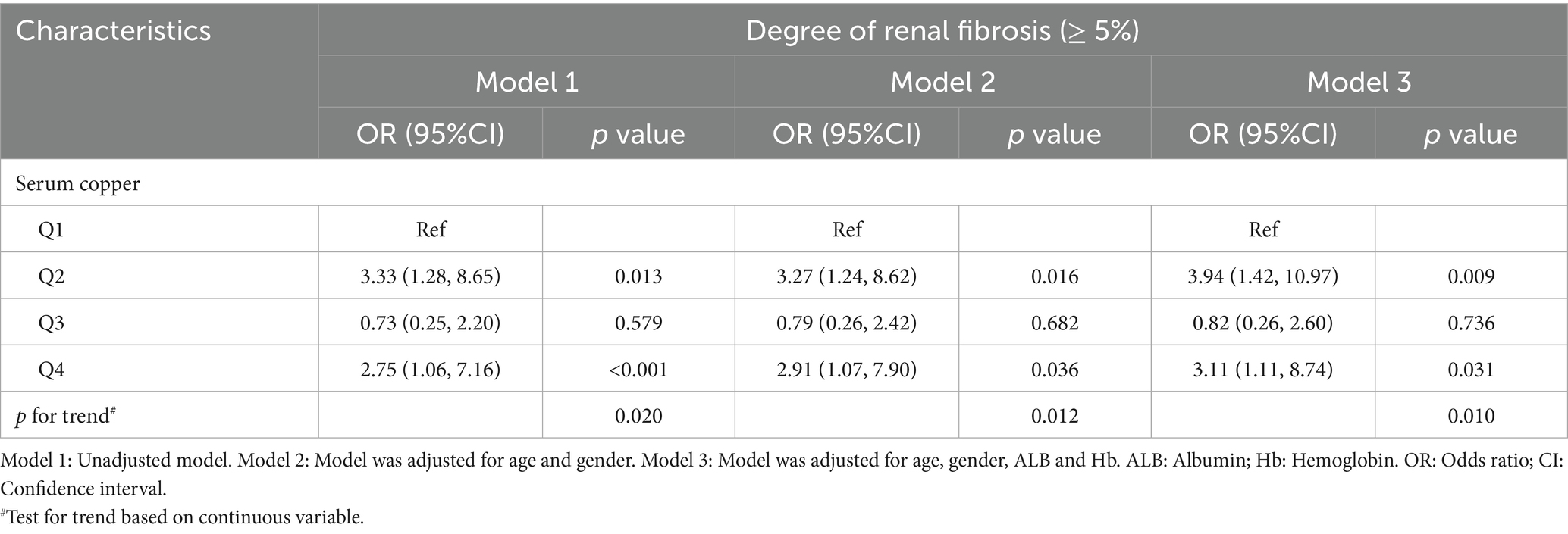 Table 7. Logistic regression analysis of the association between serum copper levels and renal fibrosis in CKD patients.