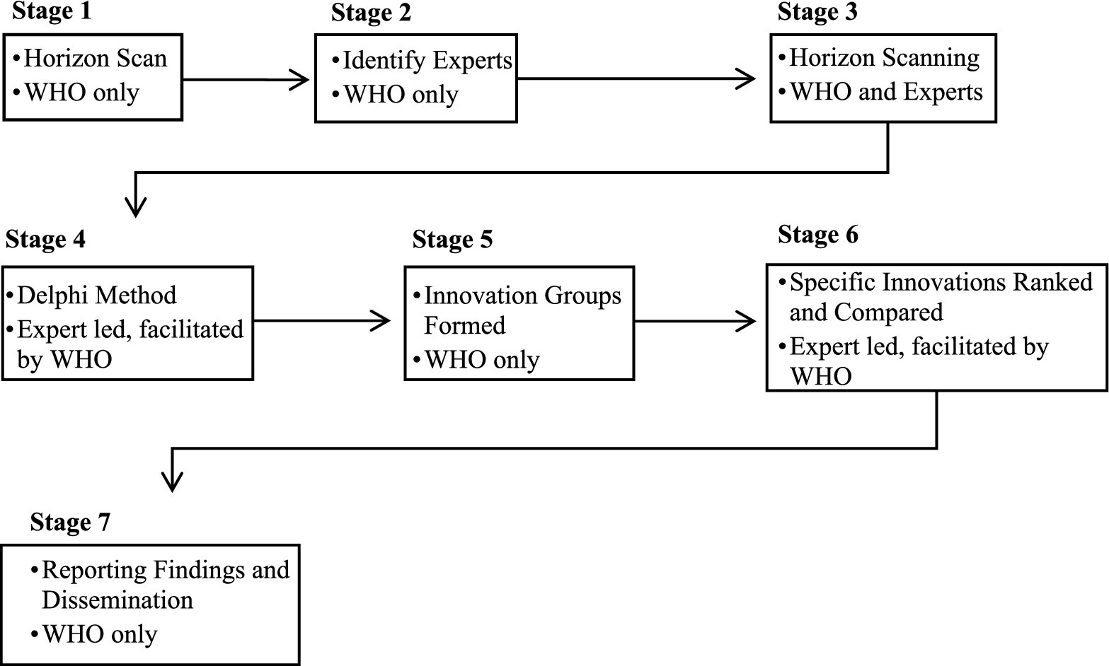 Figure 2. The stages of the foresight exercises (including if this was led by WHO, the experts or a collaboration).