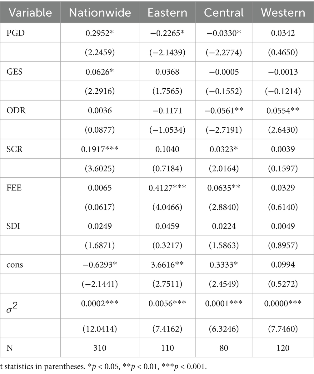 The regional differences in social capital investment and education expenditure essentially reflected imbalances in market mechanism maturity and higher education resource distribution. Social capital investment had the strongest influence at the national level but was significant only in the central region. This pattern stemmed from differences in marketization levels across regions. The older adult care service market in the eastern region had already matured, with limited space for social capital entry and facing relatively high competitive pressures. The central region was in the deepening stage of market-oriented reform, with coexistence of government dominance and market mechanisms, allowing social capital to effectively fill public service supply gaps. In the western region, market mechanisms were underdeveloped, with low social capital activity, and combined with long investment return cycles and high risks, local governments’ lack of supporting policies further constrained social capital participation. The extremely significant regional differences in education expenditure profoundly reflected the historical pattern of key universities and research institutions being primarily located in eastern metropolises since the founding of the nation. The eastern region relied on abundant higher education resources to establish comprehensive older adult care service talent cultivation systems, with close industry-university-research cooperation (46). Although the central region had some key universities, overall quantity and quality fell short of the east. The western region lacked higher education resources, with insufficient talent cultivation capacity and facing serious talent outflow problems, with excellent graduates tending to seek employment in developed eastern regions, further weakening the local effects of education investment. The nonsignificance of older adult consumption capacity at both national and regional levels reflected the universal existence of supply-side constraints, meaning that even when older adults possessed payment capacity, demand could not effectively convert without high-quality service supply.