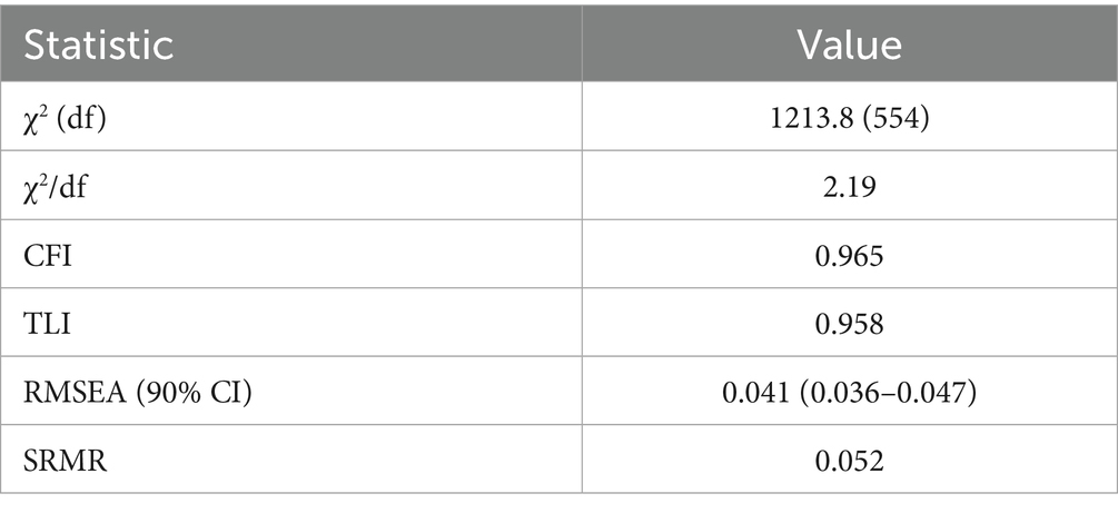 Construct validity was examined through a split-sample strategy. The cohort was randomised 1:1 into exploration (n = 230) and confirmation (n = 230) using a computer-generated sequence. In the exploration sample, exploratory factor analysis with principal-axis extraction and promax rotation identified latent dimensions; factors with eigenvalues > 1.0 and items with loadings ≥ 0.40 were retained. Confirmatory factor analysis was then performed in the hold-out sample with maximum-likelihood estimation. Model fit was adjudicated on χ2/df < 3, comparative-fit index (CFI) ≥ 0.95, Tucker–Lewis index (TLI) ≥ 0.95, root-mean-square error of approximation (RMSEA) ≤ 0.06, and standardised root-mean-square residual (SRMR) ≤ 0.08.