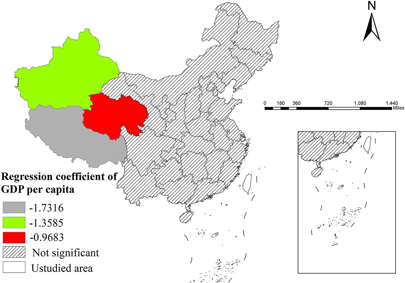 Firstly, per capita GDP showed significant negative correlation with incidence only in western China, while its effect was nonsignificant in central and eastern regions (Figure 3).