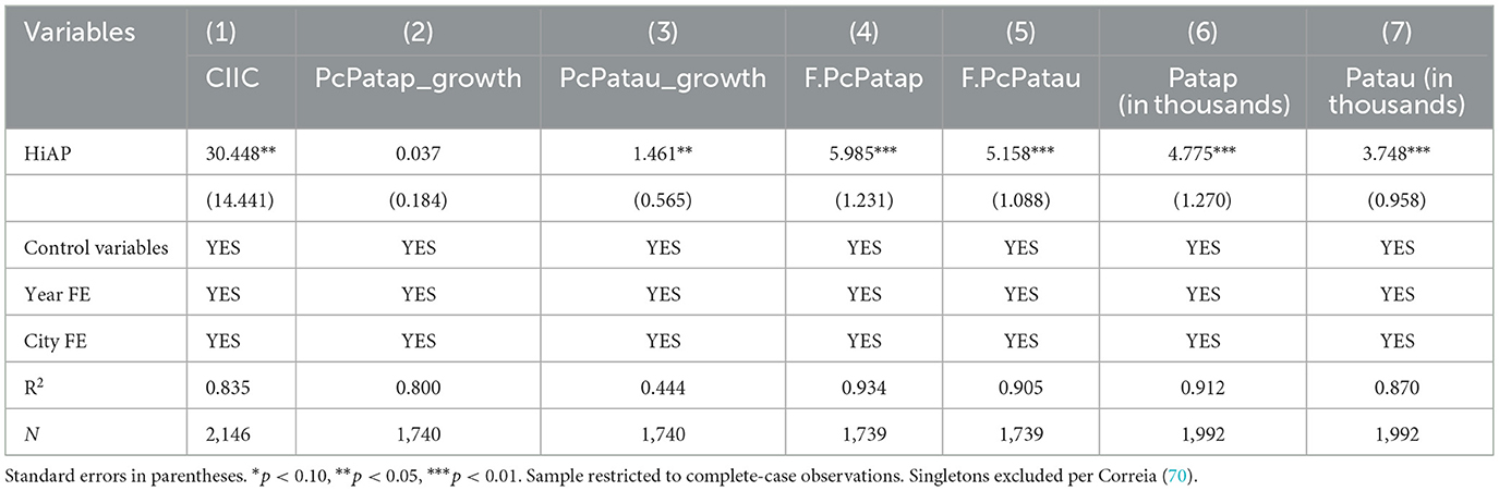 Discussion: These results underscore the importance of HiAP in promoting innovation through human capital development and offer practical policy implications for advancing sustainable urban development.