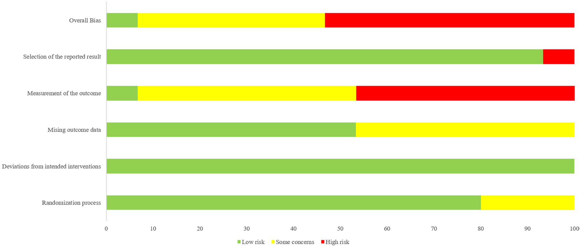 Overall risk of bias: review authors' judgements about each risk of bias item presented as percentages across all included studies.