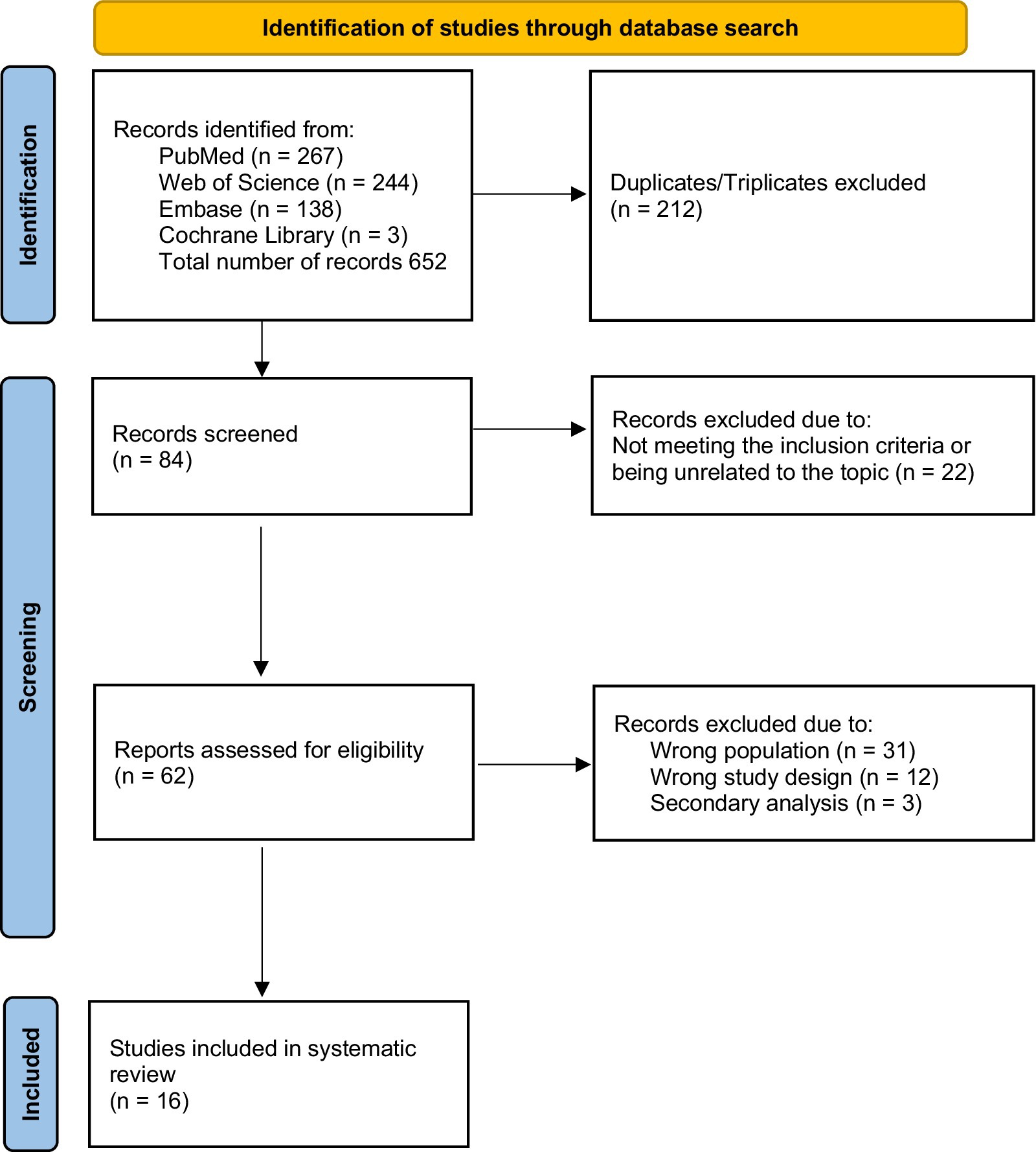 This systematic review was conducted in accordance with the Preferred Reporting Items for Systematic Reviews and Meta-Analyses (PRISMA) guidelines (11). The PRISMA checklist is included as Supplementary Table 3. The protocol was registered in the PROSPERO database under the registration number CRD420251067594.