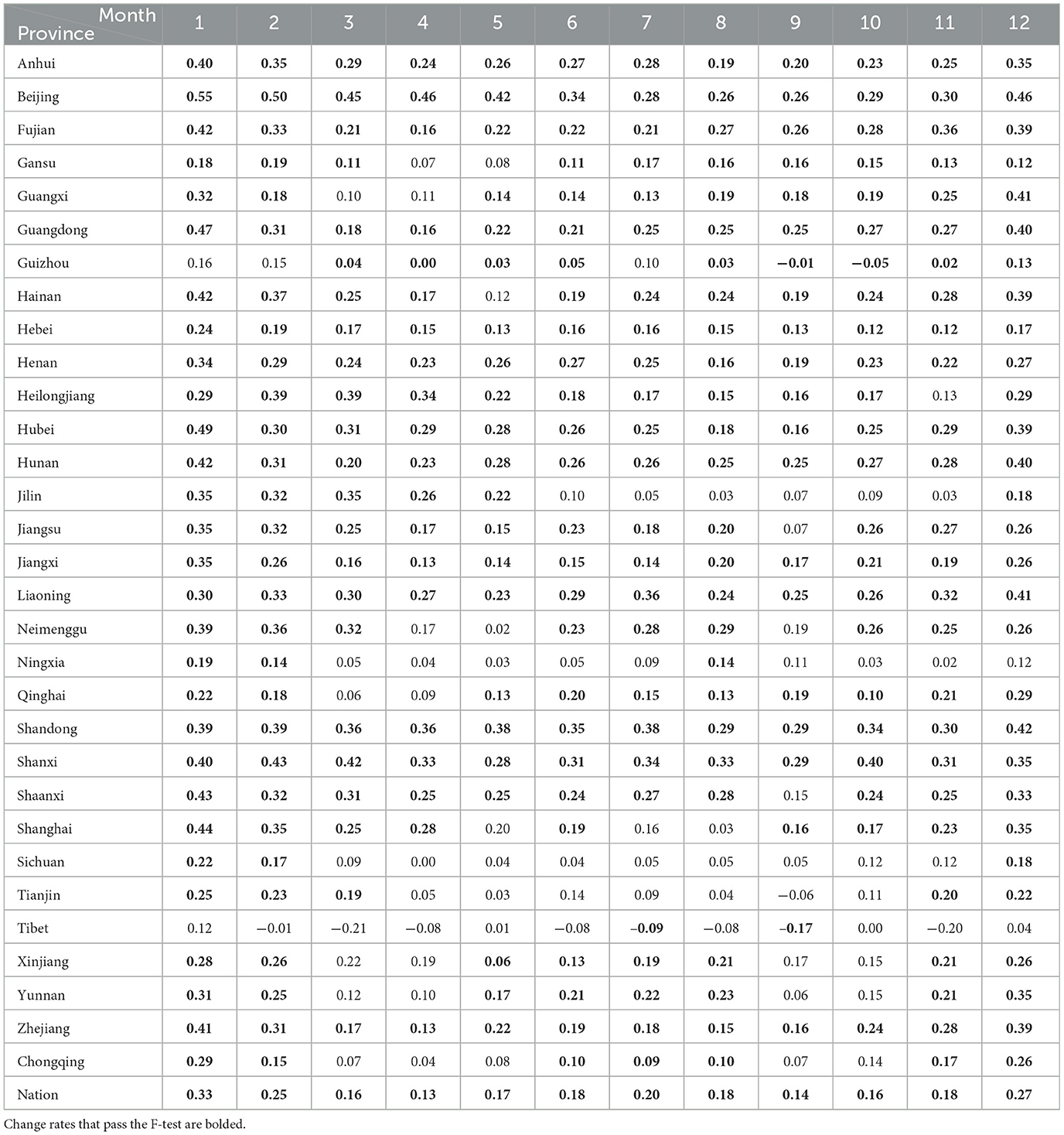 Table 1. Change rates of monthly influenza incidence across provinces in mainland China from 2004 to 2020.