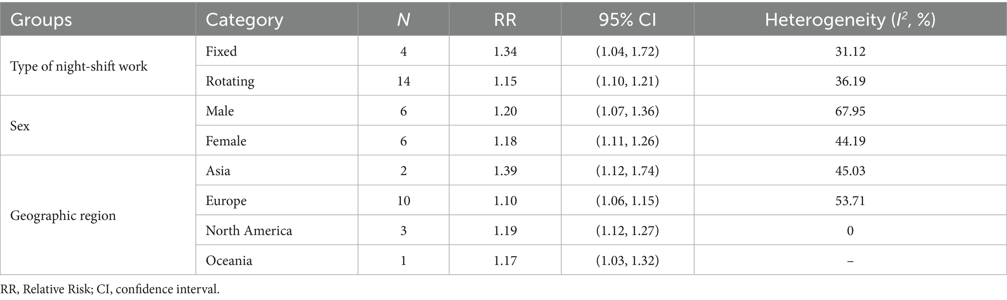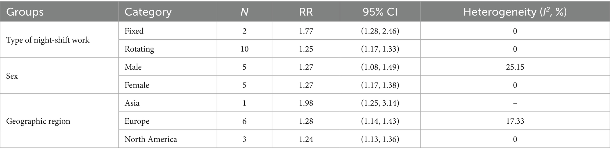 Table 3. Subgroup analyses of the risk of total CVD mortality (type of night shift work, sex, geographic region).