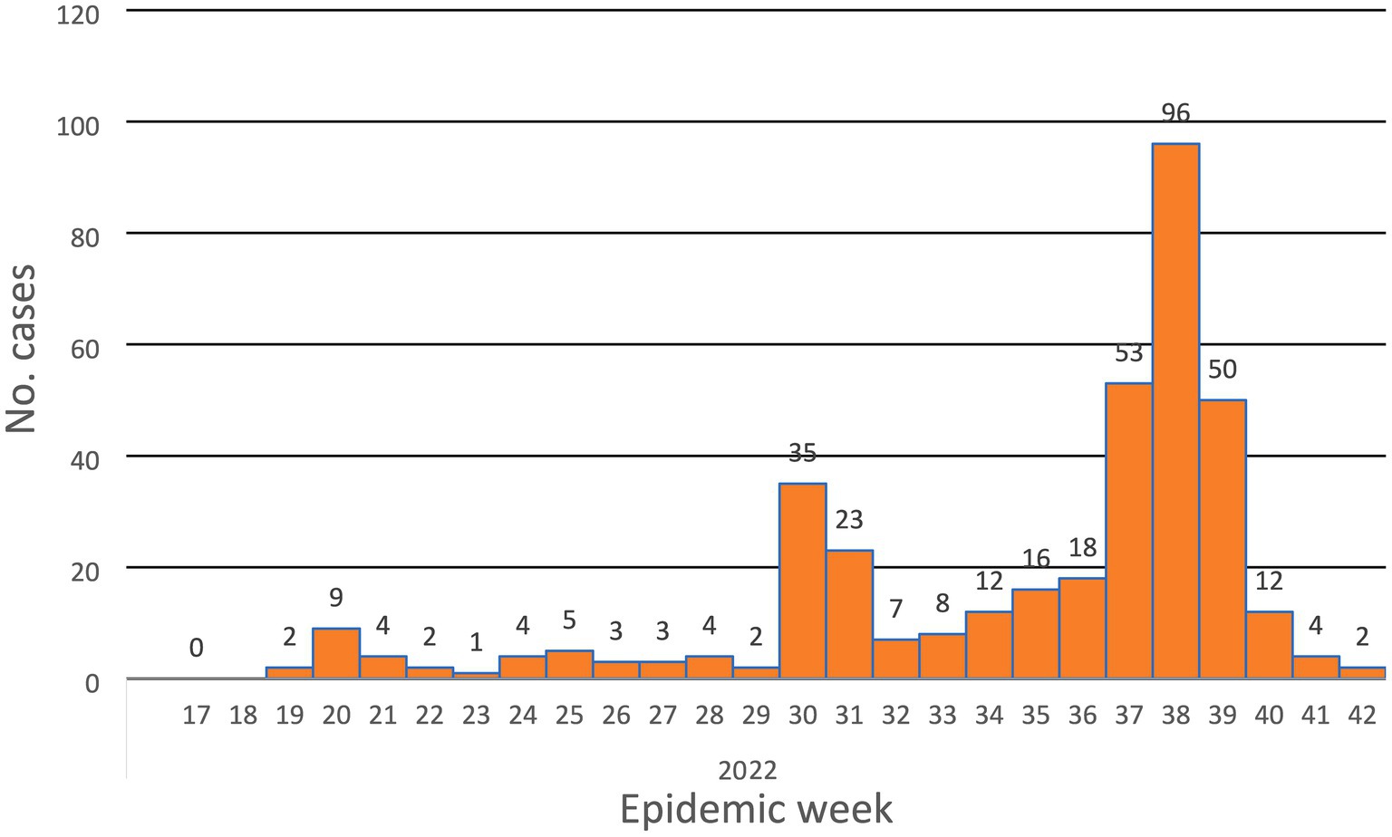 Being aware of the emergence of the disease in Europe, the HEEC Directorate started to establish a surveillance system for the disease, even 1 month before its declaration by the WHO. The outbreak extended for 24 weeks and ended in October 2022.