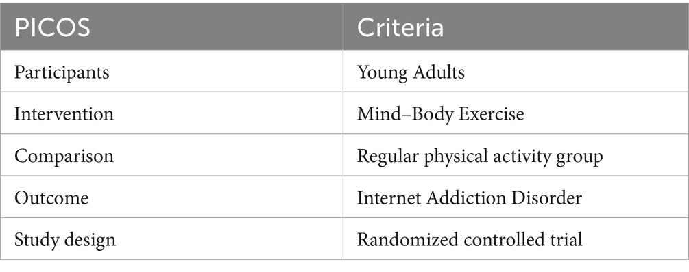This investigation adhered rigorously to the PRISMA guidelines (13), establishing comprehensive search protocols and selection criteria based on PICOS methodology in evidence-based practice. Only randomized controlled trials examining how structured exercise interventions impact Internet Addiction Disorder among young adults (18–29 years) were selected for analysis. Experimental cohorts participated in various movement-based or contemplative practices—including Tai Chi, Baduanjin, Mindfulness, Dancesports, Aerobic dance, Yoga, or Qigong—while control conditions included no treatment, treatment as usual, or waitlist controls without structured mind–body interventions. Assessment utilized identical IAD measurement instruments across both groups, administered pre- and post-intervention. Intervention efficacy was determined when the differential calculation between baseline and concluding measurements yielded negative values, Indicating an improvement in symptoms of internet addiction.