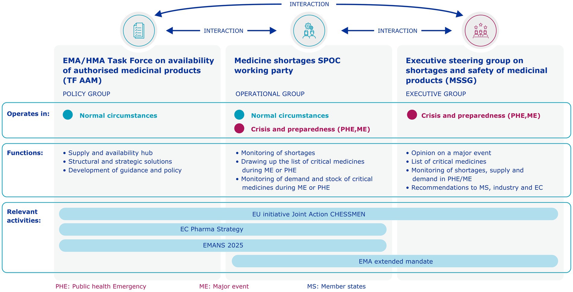 Today, the EU regulatory network is better equipped than 15 years ago to deal with shortages and has shifted from a reactive toward a more proactive and preventative approach: shortages are a key area of focus in the European medicines regulatory network strategy (EMANS) and the SPOC WP and MSSG are key structures to ensure EU-level coordinated management and prevention of shortages. In addition, EU collaboration also continues through CHESSMEN.