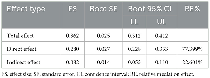 Table 4. Bootstrap analysis for total, direct, and mediation effects.