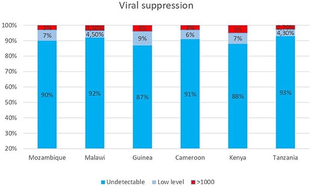 Among the challenges we are facing, we have to mention the limited therapeutic options for the minority of patients who have not achieved virological suppression. One element of concern is that, in a recent study carried out in Mozambique (15), we have seen the emergence of resistance to Dolutegravir (DTG), the antiretroviral drug of recent introduction in Africa (since 2018), which is now used by more than 90% of patients, the drug theoretically most durable, which according to clinical studies (16) promised to create little or no resistance. In our cohort, patients who experienced confirmed virological failure were eligible for testing; it was possible to perform only a small number of tests, due to high costs and complexity of the exam; among the 19 samples tested for DTG resistance, nine had some degree of resistance. Other studies in Africa show similar results (17, 18). Another cause for concern is that the various national guidelines, with a few exceptions, do not provide guidance on what to do in the event of resistance to Dolutegravir and also very few patients in Africa have access to resistance testing.