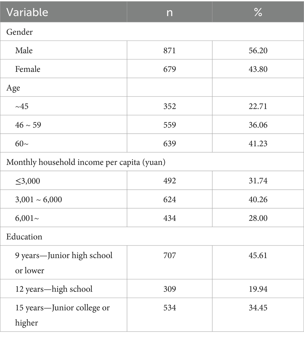 This study used a standardized questionnaire to assess participants’ demographic characteristics, including gender, age, education level, and average monthly per capita household income.