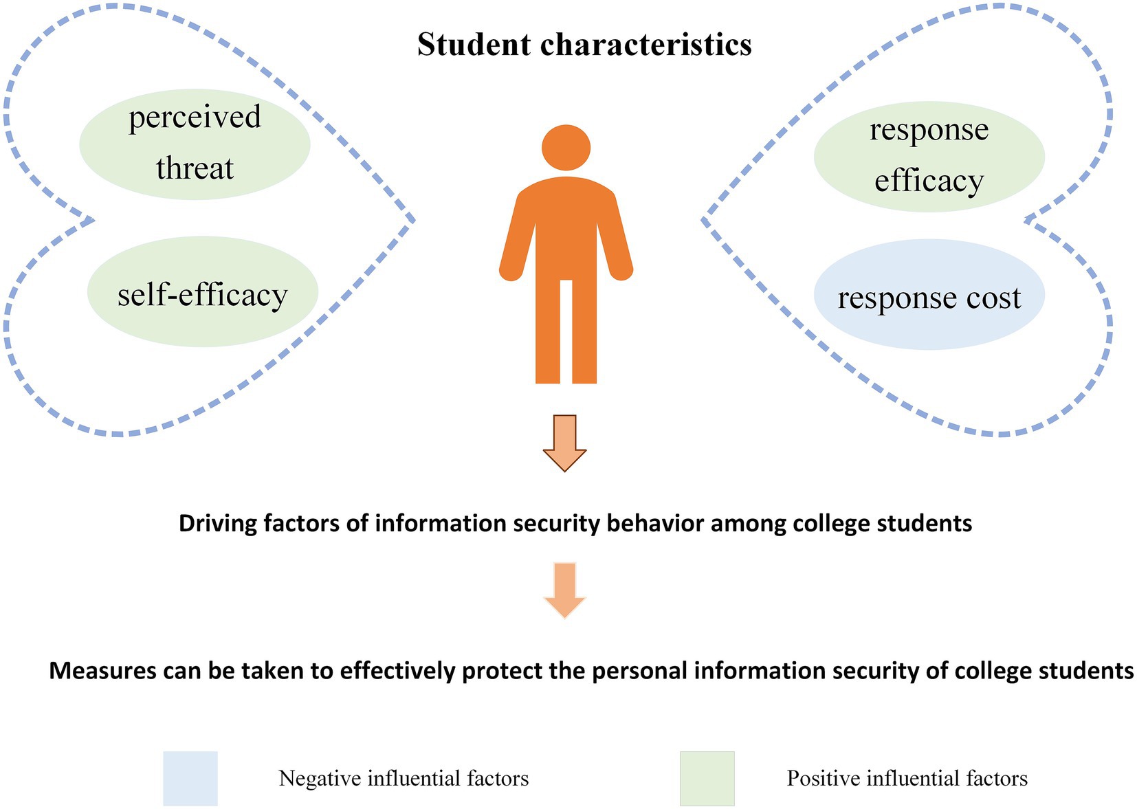 Discussion: These findings not only help enrich the knowledge system in the field of information security, but also provides practical insights for strengthening the campus information security environments. Furthermore, they provide actionable insights for policymakers tasked with addressing issues in information security behavior.