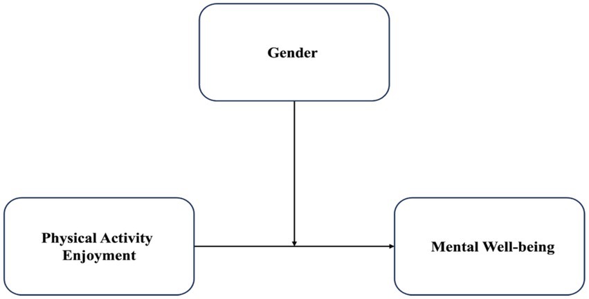 Men and women may enjoy physical activities differently, and this can have different effects on their mental health (26, 27). It has been reported that male students generally gravitate towards competitive and high-intensity activities, while female students prefer activities focused on aesthetics, social interaction, and health (28). However, gender cannot be reduced to a fixed binary category. Instead, it is increasingly conceptualized as a socio-cultural construct shaped by psychological processes, cultural expectations, and institutional practices that influence how individuals perceive and experience physical activity (29, 30). These gender differences may moderate the relationship between physical activity enjoyment and mental well-being by altering the direction and strength of this relationship. In this context, the impact of physical activity on individuals is not limited to physical competence; it also contributes to an individual’s mental well-being. Further, Gender Schema Theory (GST) posits that gendered cognitive schemata shape how individuals interpret physical activity experiences, influencing both interpretation and emotional response in ways that go beyond binary categorizations (31).