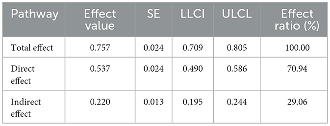 Given the self-report nature of the questionnaires, common method bias may exist. This study used procedural controls and Harman's single-factor test. Before the test, anonymity and reverse scoring were implemented. Harman's test showed that the variance explained rate of the largest common factor was 30.81%, below the 40% threshold, indicating no serious common method bias.