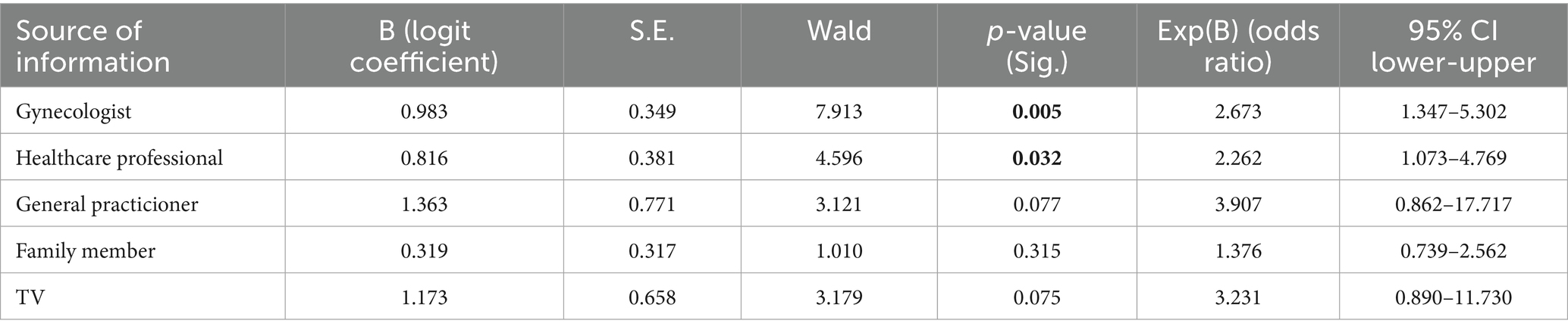 Table 5. The impact of information sources on breast self-examination—results of multivariate logistic regression.