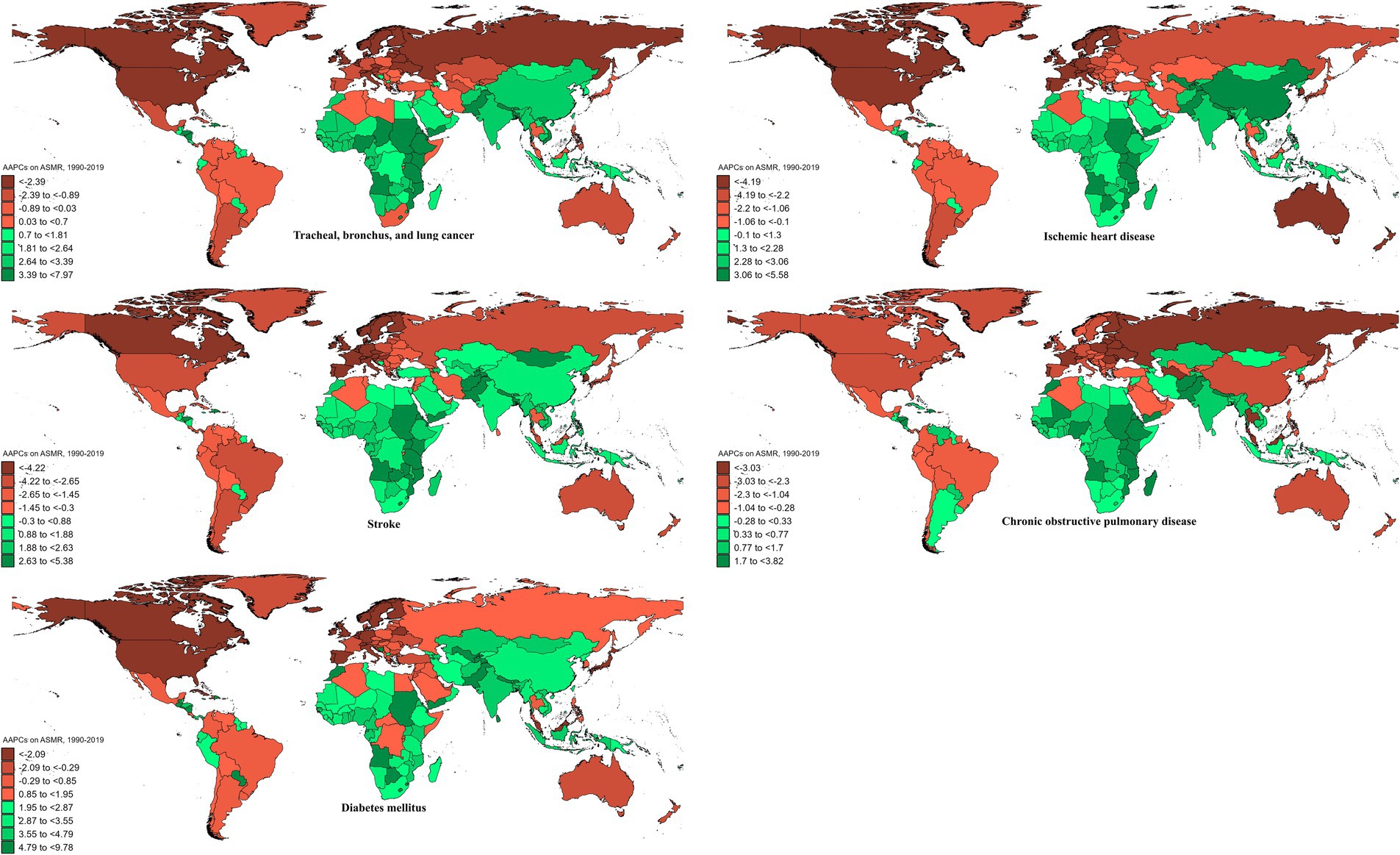 Figure 2. AAPCs on ASMRs of ambient particulate matter-attributed non-communicable diseases from 1990 to 2019.