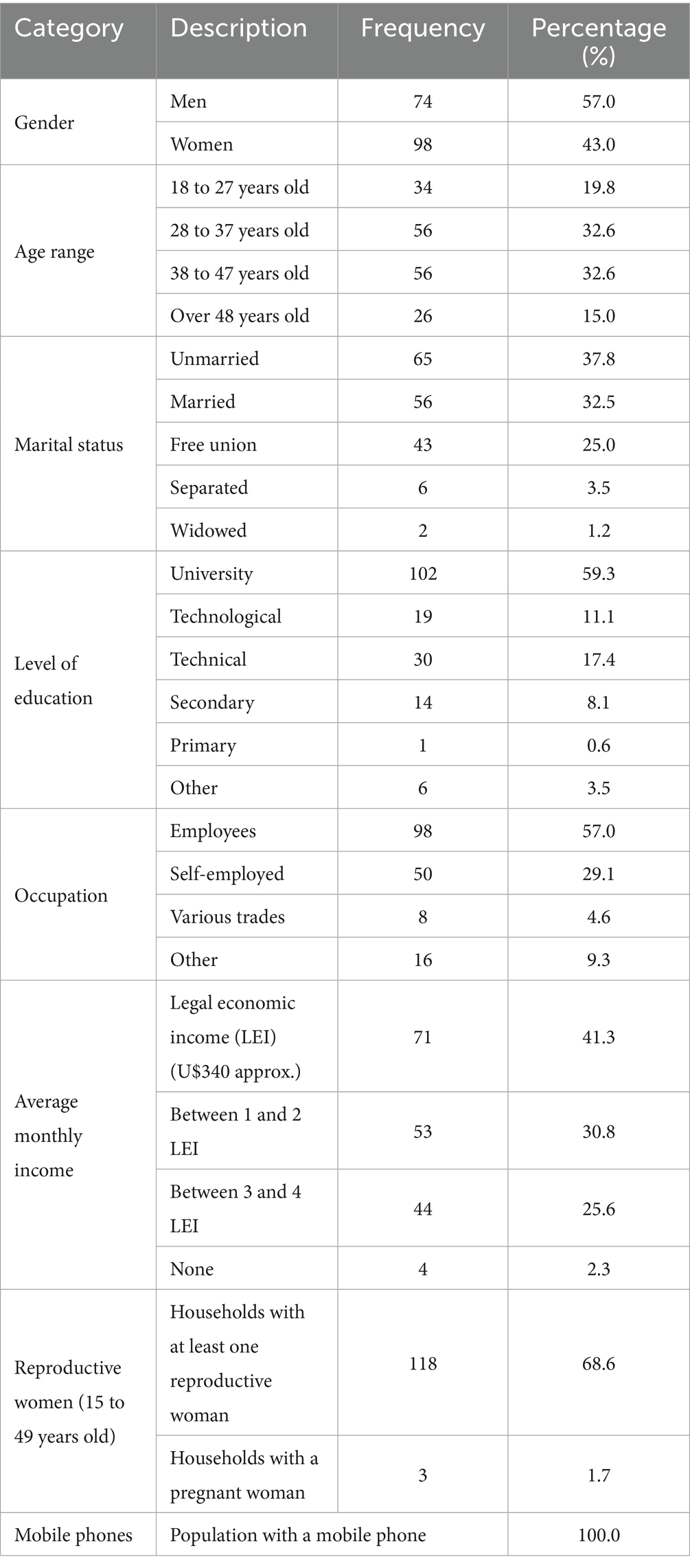 Table 2. Sociodemographic characterization of the target population in a local area from municipality of Santander de Quilichao, Colombia.