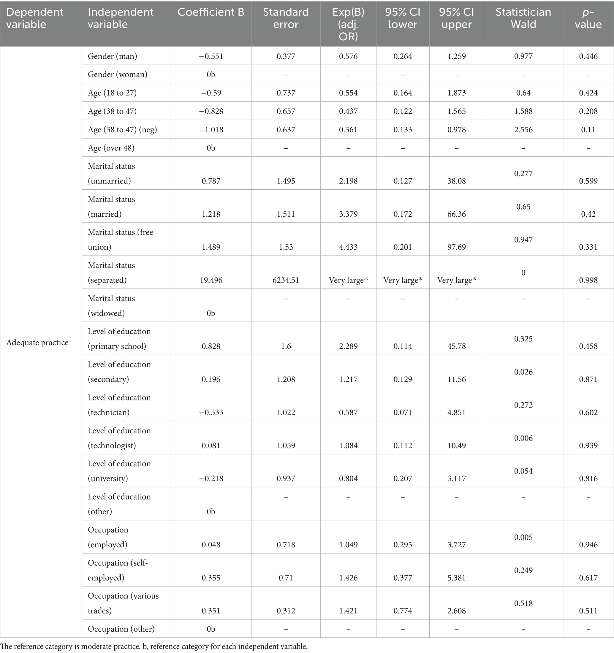 Table 7. Multinomial logical regression analysis of sociodemographic factors associated with practice about MBD in a local area from Santander de Quilichao, Colombia.