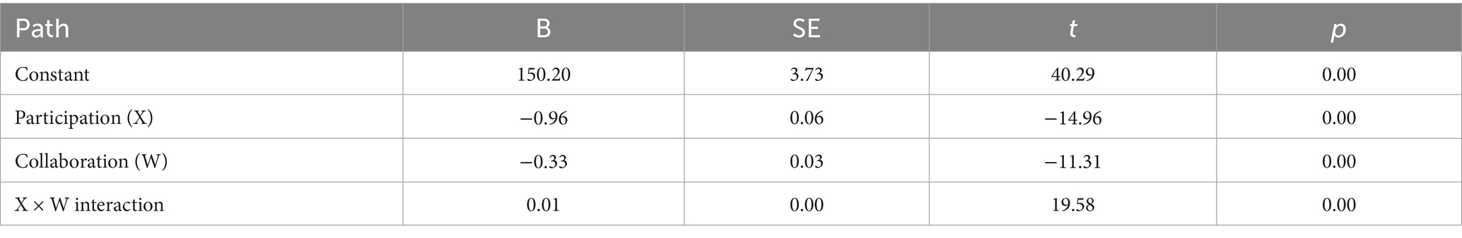Regression analyses revealed that health education satisfaction exerted a significant main effect on quality of life (B = −0.96, p < 0.001), and health behavior also showed a significant main effect (B = −0.33, p < 0.001). Moreover, the interaction term between satisfaction and health behavior significantly predicted quality of life (B = 0.01, p < 0.001), indicating that health behavior played a significant moderating role in the relationship between satisfaction and quality of life (Table 6).